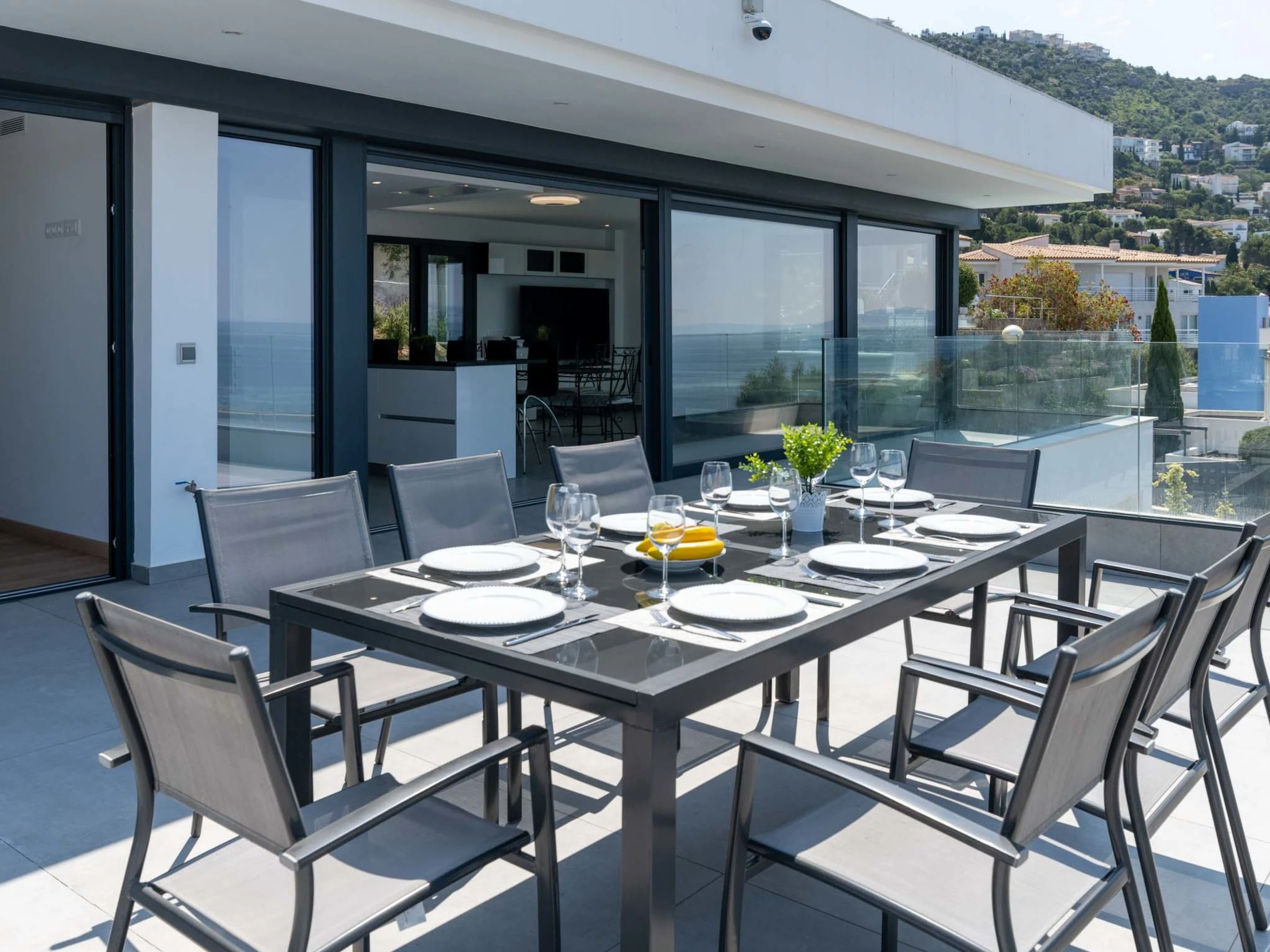 Villa 5 pièces 145 m2 sur 2 niveaux, situation sud-ouest. Spacieux et clair, aménagement confortable et luxueux: à l'étage inférieur: 1 chambre avec 1 grand-lit (160 cm, longueur 200 cm), air-conditionné, chauffage à air chaud et volet roulant électrique. Sortie sur la terrasse. 1 chambre avec 1 grand-lit (160 cm, longueur 200 cm), douche/WC, air-conditionné, chauffage à air chaud et volet roulant électrique. Sortie sur la terrasse. 1 chambre avec 1 x 2 lits superposés (90 cm, longueur 190 cm), air-conditionné, chauffage à air chaud et volet roulant électrique. Douche/WC. À l'étage supérieur: séjour/salle à manger avec table pour les repas, TV (satellite) et Télévision numérique (écran plat), air-conditionné, chauffage à air chaud et volet roulant électrique. Sortie sur la terrasse, sur la piscine. 1 chambre avec 1 grand-lit (150 cm, longueur 190 cm), air-conditionné, chauffage à air chaud et volet roulant électrique. Grande cuisine ouverte (four, lave-vaisselle, 3 plaques à induction, grille-pain, bouilloire électrique, micro-ondes, congélateur, cafetière électrique, ilot de cuisine). Bain/WC. Grande terrasse, situation sud. Meubles de terrasse. Superbe vue panoramique sur la mer. A disposition: lave-linge, sèche-linge, fer à repasser, lit bébé, sèche-cheveux. Garage. Veuillez noter: TV seulement ES, FR. Pas acceptes groupes de jeunes + groupes de 8 adultes. Exclusivement familles avec enfants. Sit. montagneuse: pression d'eau parfois faible-pompe est installée. [hidden] // Reg. Nr.: ESFCTU00001701900010153200000000000000000[hidden]4