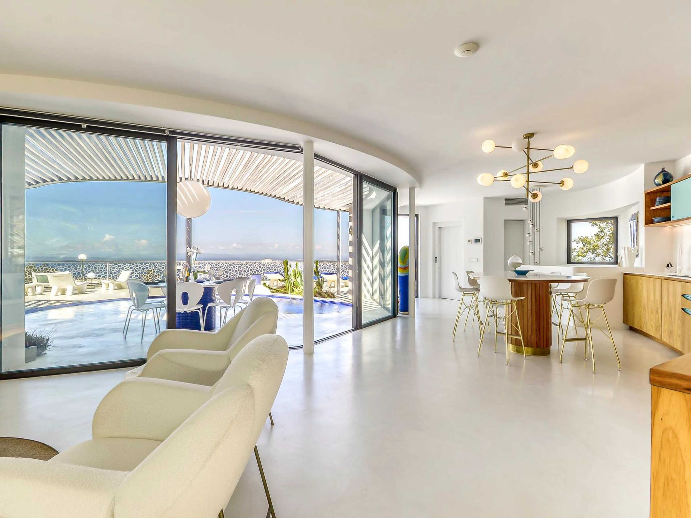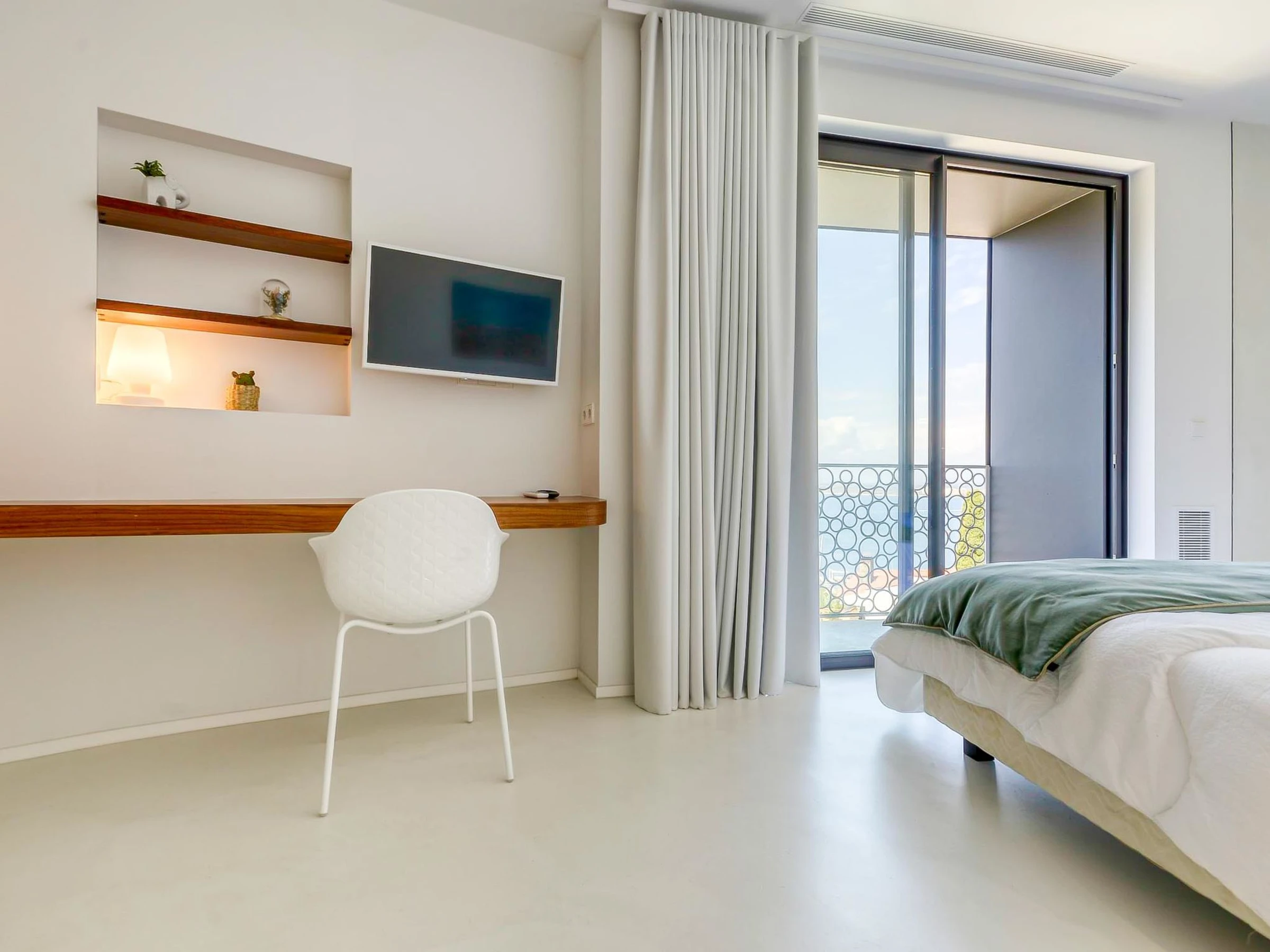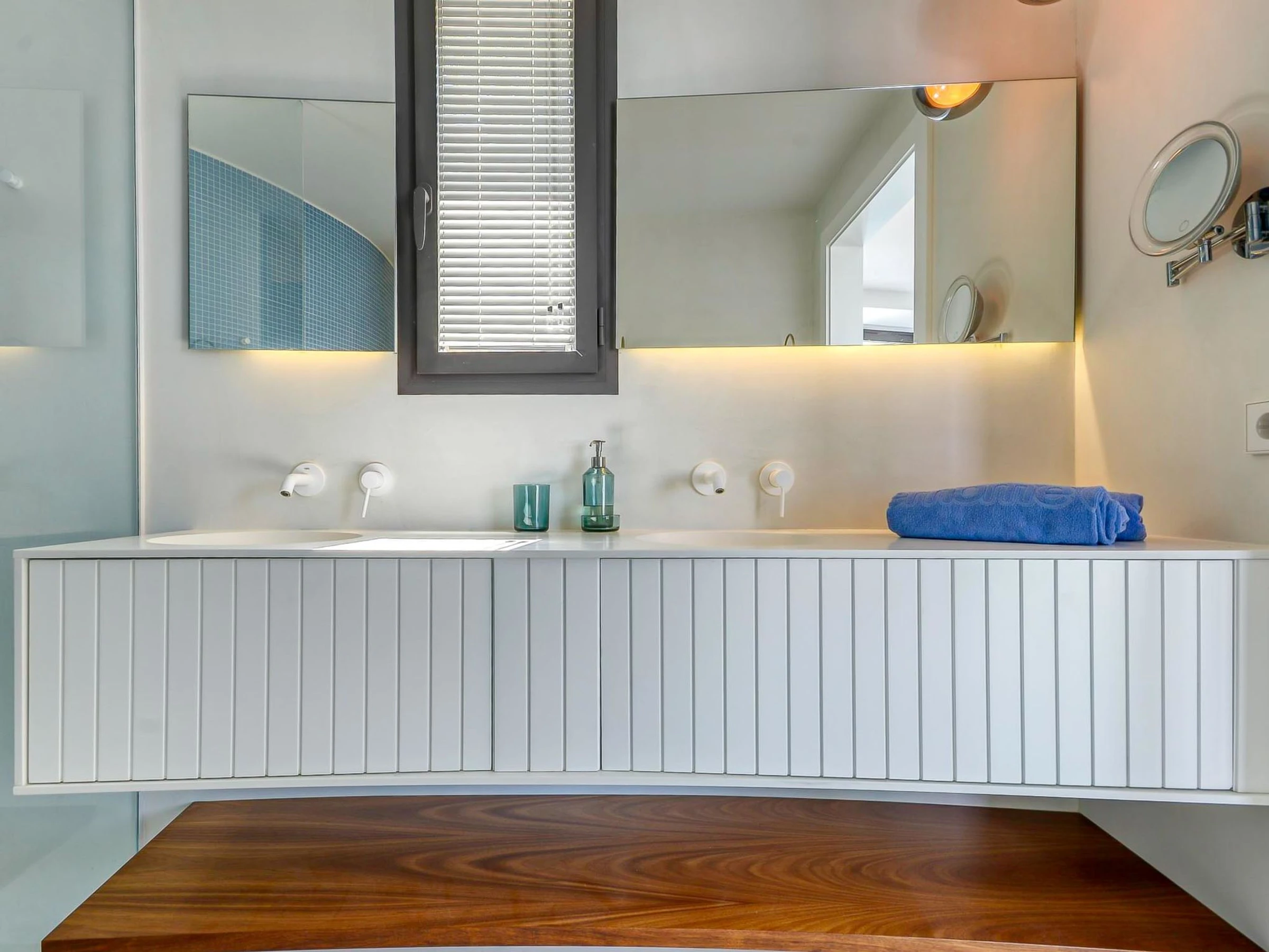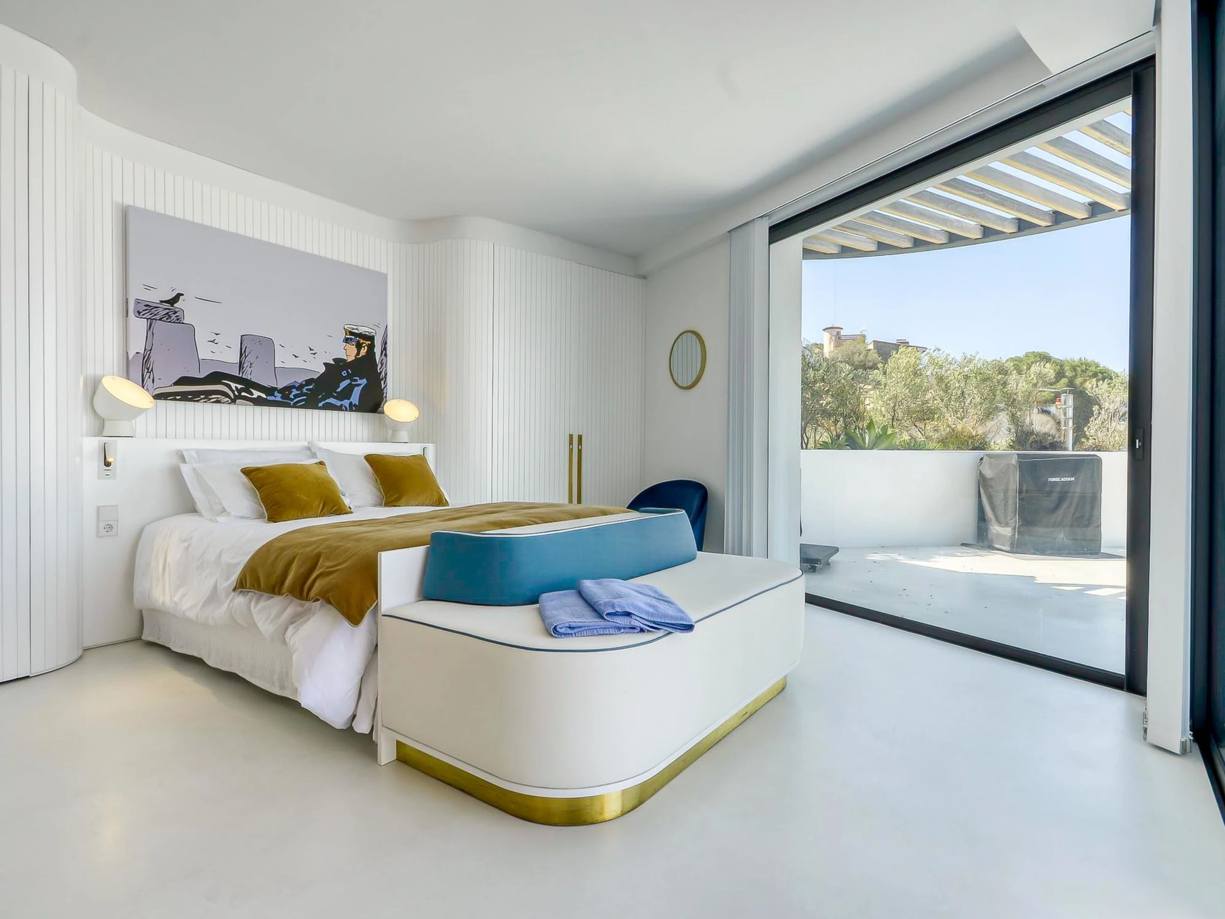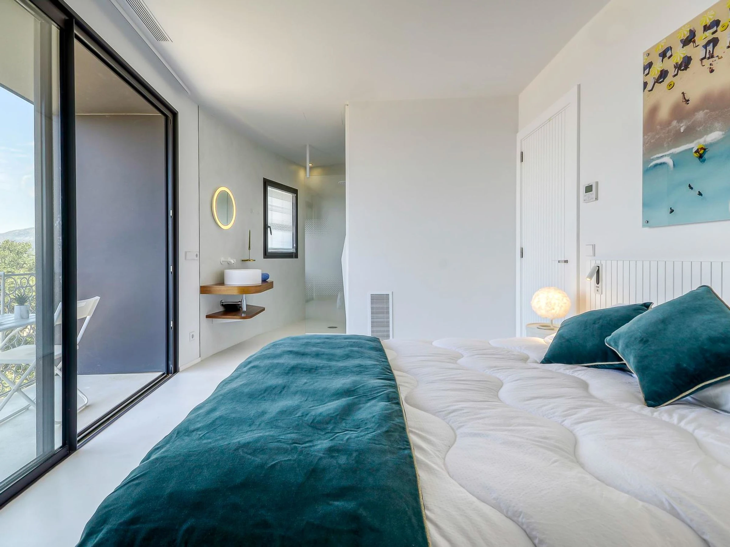 Villa 5 pièces 280 m2 sur 2 niveaux, situation sud-ouest. Spacieux, complètement rénovée, aménagement très moderne et de style: à l'étage supérieur: 1 chambre avec 1 grand-lit (160 cm, longueur 200 cm), douche/WC, air-conditionné et chauffage à air chaud. Sortie sur le balcon. 1 chambre avec 1 grand-lit (160 cm, longueur 200 cm), douche/WC, air-conditionné et chauffage à air chaud. Sortie sur le balcon. 1 grande chambre avec 1 grand-lit (160 cm, longueur 200 cm), douche/WC, air-conditionné et chauffage à air chaud. Sortie sur le balcon. WC séparé. 2ème étage: (escalier en colimaçon) séjour/salle à manger ouvert avec TV (satellite), air-conditionné et chauffage à air chaud. Sortie sur la terrasse, sur la piscine, orientée sud et orientée ouest. 1 grande chambre avec 1 grand-lit (160 cm, longueur 200 cm), douche/WC, air-conditionné et chauffage à air chaud. Sortie sur la terrasse, sur la piscine. Cuisine ouverte (four, lave-vaisselle, 3 plaques à induction, grille-pain, bouilloire électrique, micro-ondes, congélateur, cafetière électrique, Capsules pour machine à café (Nespresso), ilot de cuisine). Grande terrasse. Meubles de terrasse, chaises longues (4). Superbe vue panoramique sur la mer. A disposition: lave-linge, sèche-linge, fer à repasser, chaise haute pour enfant, lit bébé, sèche-cheveux. Internet (Connexion WIFI, gratuit). Garage (2 Voitures). Veuillez noter: maison non-fumeur. TV seulement FR. A savoir : wifi uniquement au sejour-salle a manger. [hidden]-563 // Reg. Nr.: ESFCTU00001701900022265700000000000000[hidden]-563