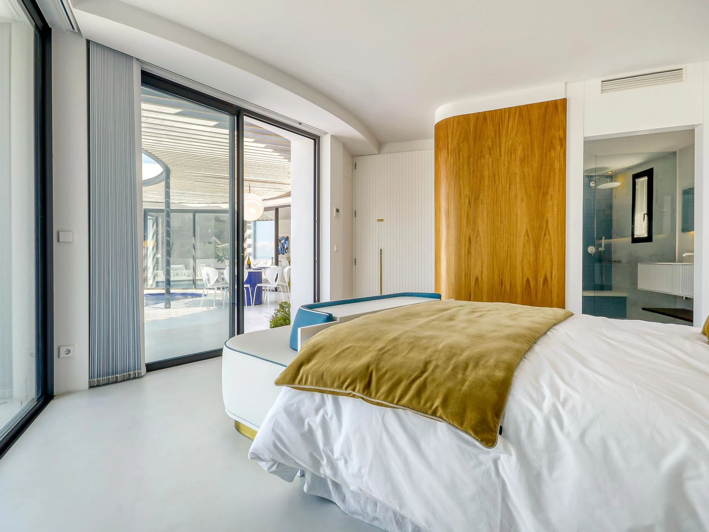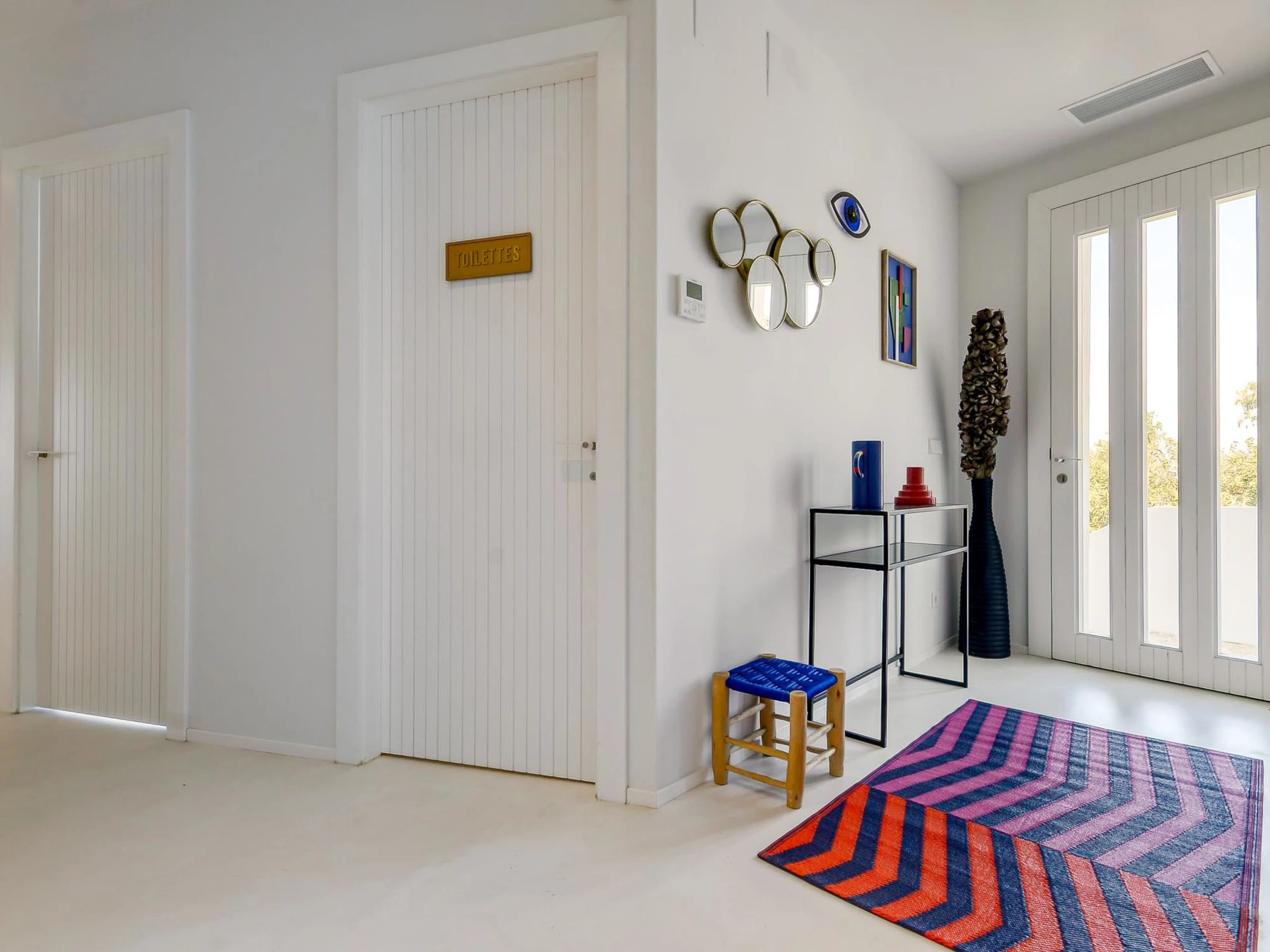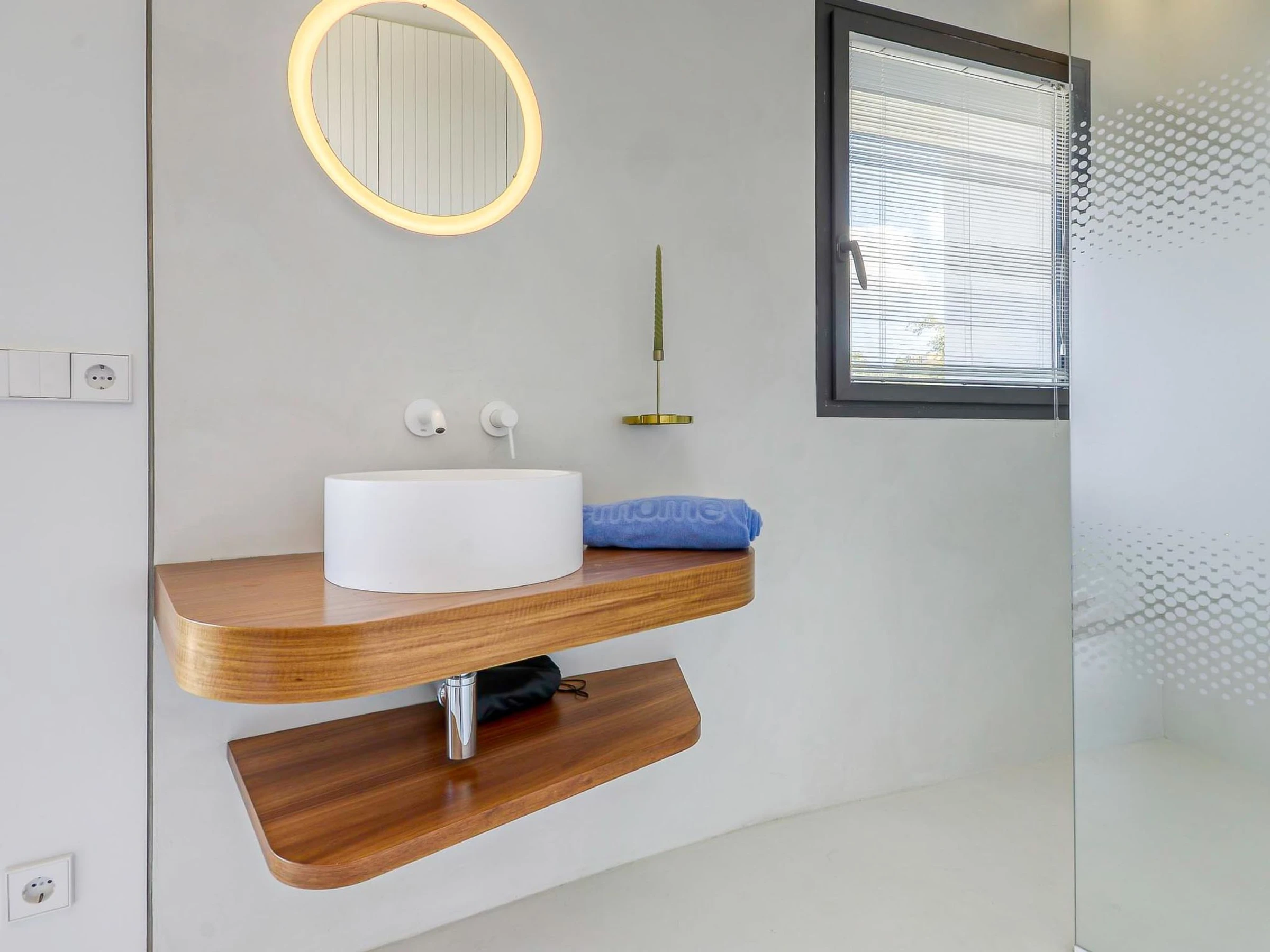 Villa moderne, confortable, luxueuse "Donut", de 2 étages, année de construction 2018. À 900 m du centre de Roses, situation tranquille, ensoleillée sur une colline, quartier résidentiel, à 400 m de la mer, à 400 m de la plage, orientée sud-ouest. A usage privé: piscine chauffée (8 x 4 m, profondeur 100 - 200 cm, disponibilité saisonnière: [hidden] - [hidden] avec marches intérieures. Piscine de forme irrégulière. WC dans l'espace piscine, terrasse, meubles de jardin. Infrastructures de la Maison: ascenseur, chauffage central, air-conditionné, blanchisserie. Place de parking, garage individuel. Supermarché, restaurant, bar 500 m, boulangerie 700 m, centre à 5 minutes à pieds, arrêt de bus "Moventis estació bus" 2.4 km, gare ferroviaire "Figueres Renfe Adif" 22 km, plage de sable "Cala de Canyelles Petites" 2.2 km, plage de galets "Cala Montjoi" 5 km, plage de rochers "Cap de Creus" 10 km, centre de plongée 900 m. Port plaisance 800 m, marina, terrain de golf (15 trous) 14 km, ecole de surf 900 m, ecole de voile 900 km, tennis couvert 2 km, golf miniature 2 km, centre sportif 2 km, chemins de randonnées pédestres depuis la maison, piste cyclable 400 m. Attractions à proximité: Aqua Park 9 km, Casino y Festival de Perelada 15 km, Campo de Golf Perelada 15 km, Ruinas d'Empuries 25 km, Museo Dali Figueres 20 km, Cadaqués/ Cap de Creus 25 km. Le propriétaire n'accepte pas les groupes. Le propriétaire n'accepte pas les groupes de jeunes. La remise des clés a lieu à l’agence de Roses.