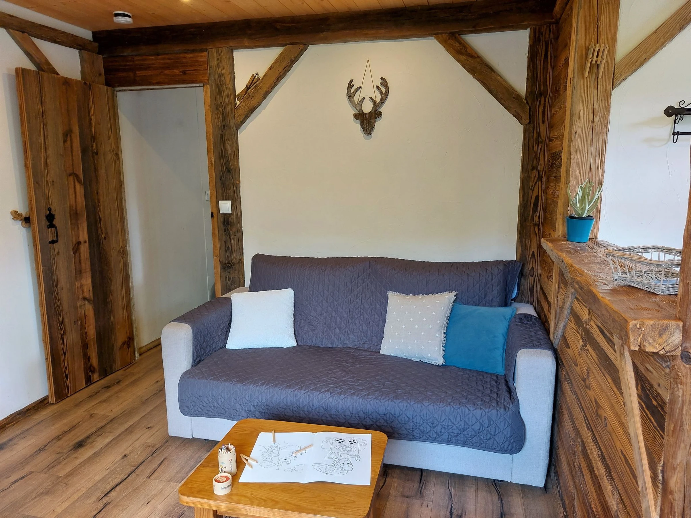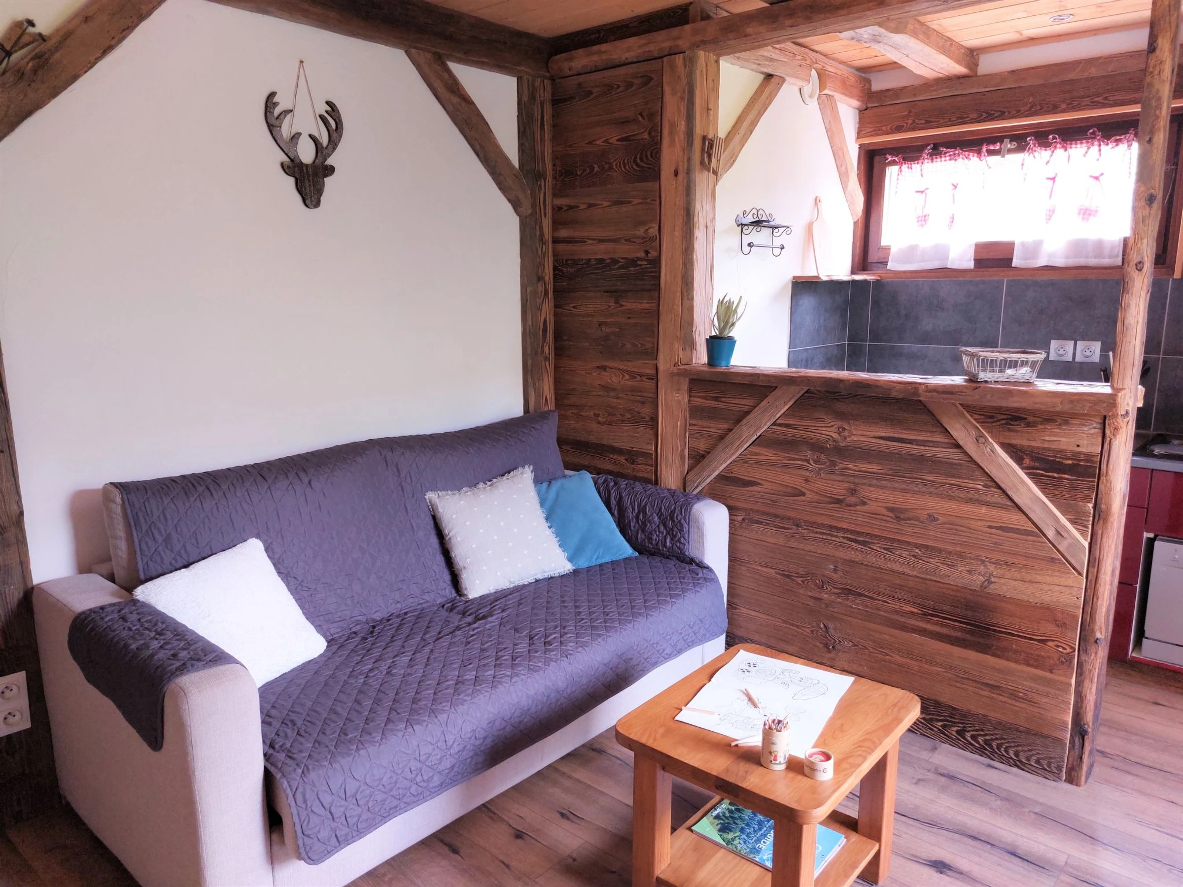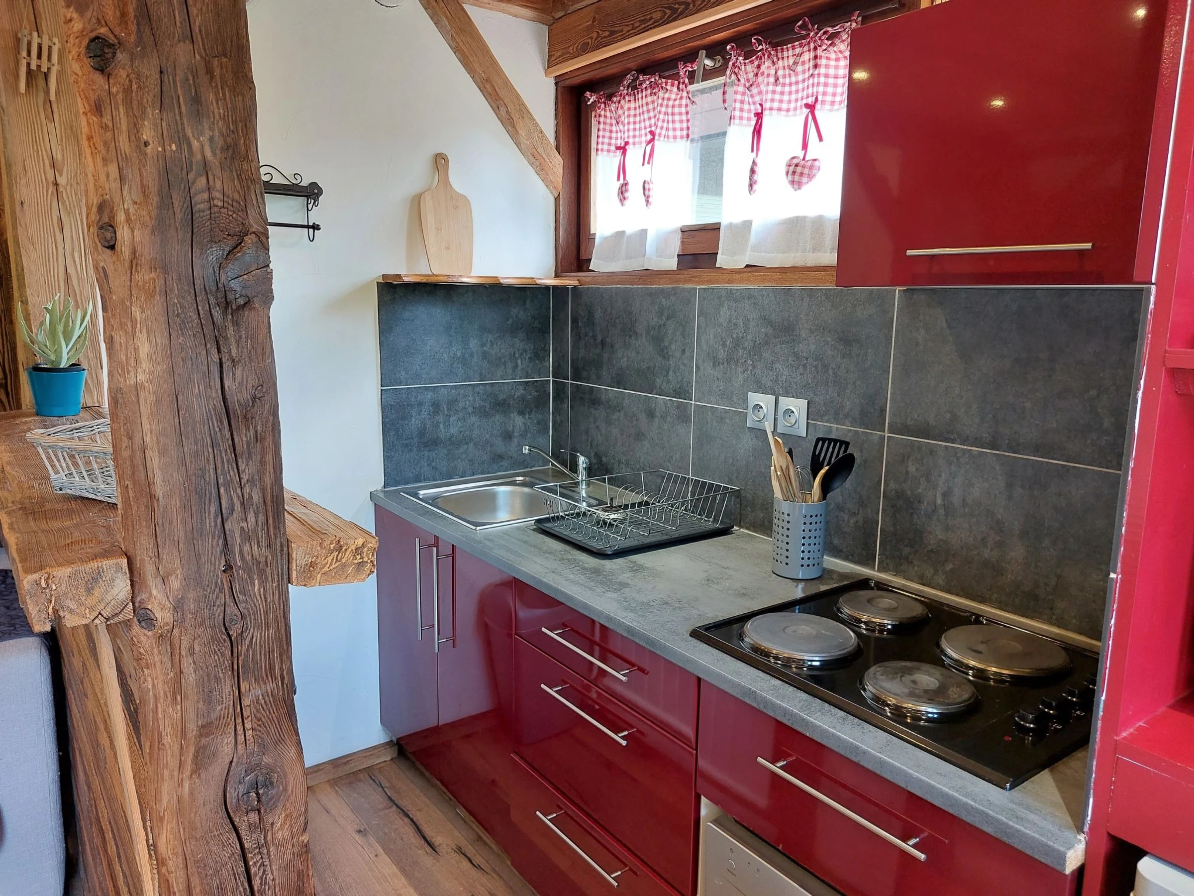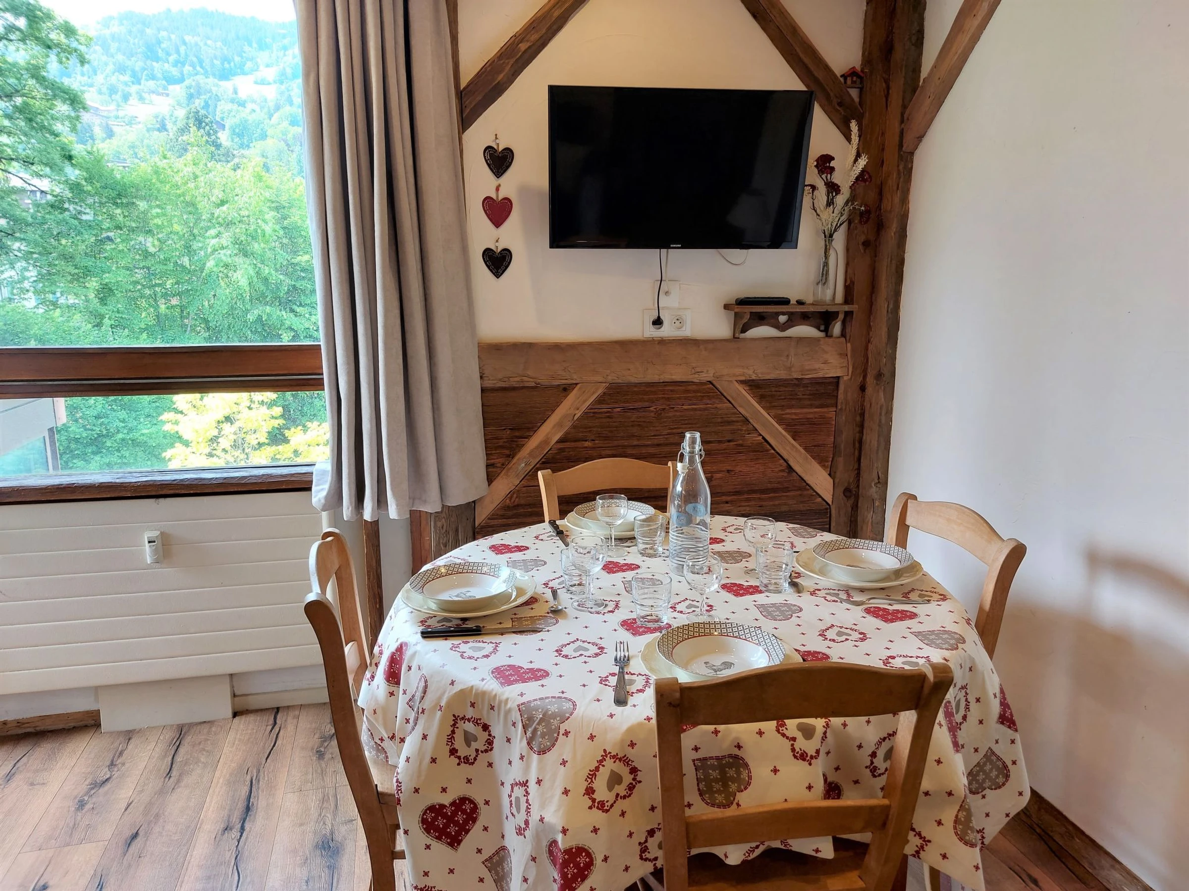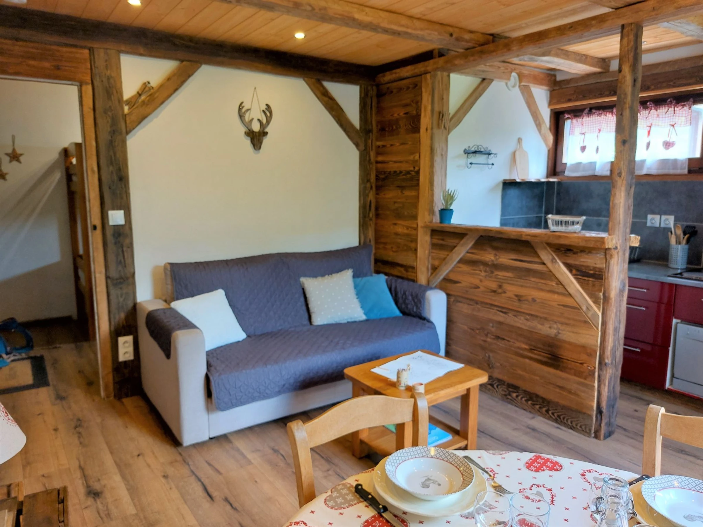 "Castel des roches" studio 25 m2 au 3ème étage. Séjour/salle à manger avec 1 divan-lit double (140 cm, longueur 190 cm), table pour les repas, TV et écran plat. Sortie sur le balcon. Entrée avec 1 x 2 lits superposés (90 cm). Cuisine ouverte (4 plaques de cuisson, lave-vaisselle, bouilloire électrique, micro-ondes, cafetière électrique, appareil à raclette). Douche/WC. Chauffage au fuel. Petit balcon, situation sud-est. Mobilier de balcon. Belle vue sur les montagnes. A disposition: lave-linge. Internet (Connexion WIFI, en sus). Place de parking. Veuillez noter: logement non-fumeur. TV seulement FR. Détecteur de fumée. Annonce d'un particulier (art 155, IV du CGI).