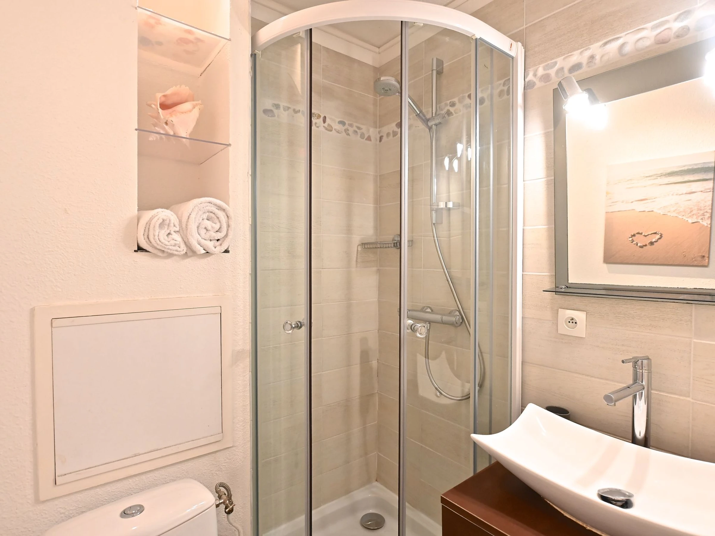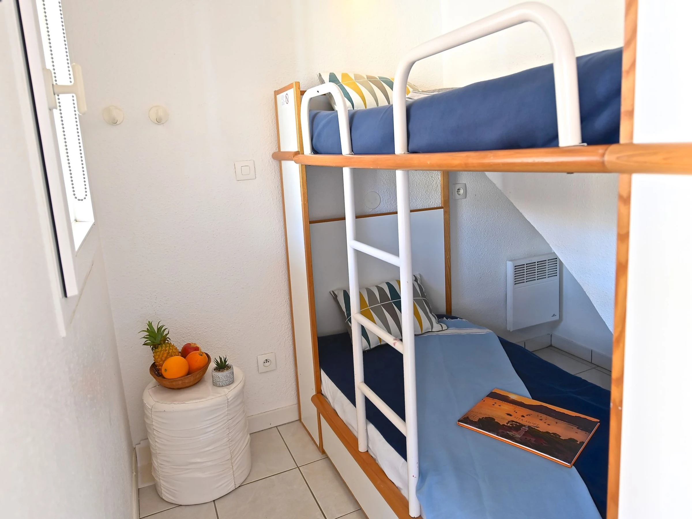 "Le Village (C0363)", apt 3 pièces 40 m2 sur 2 niveaux au 2ème étage. Séjour avec 2 divans-lits (80 cm, longueur 190 cm), TV (écran plat). Sortie sur la terrasse. 1 petite chambre avec 1 x 2 lits superposés (80 cm, longueur 190 cm). Coin cuisine (4 plaques de cuisson, mini-four, lave-vaisselle, grille-pain, bouilloire électrique, micro-ondes, congélateur, cafetière électrique). Douche/WC. Chauffage électrique. À l'étage supérieur: 1 chambre avec 1 grand-lit (1 x 140 cm, longueur 190 cm), douche/WC. Sortie sur la terrasse. 2 terrasses 10 m2. Meubles de terrasse. Belle vue sur la mer. A disposition: Internet (Connexion WIFI, en sus). Place de parking No 2058 (couvert), hauteur 180 cm. Veuillez noter: logement non-fumeur. Détecteur de fumée. Annonce d'un professionnel (art 155, IV du CGI)