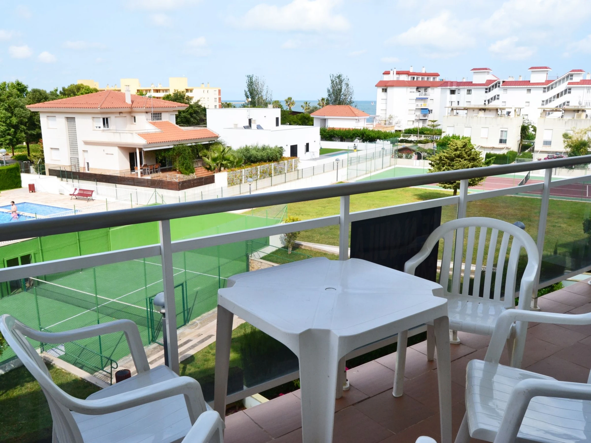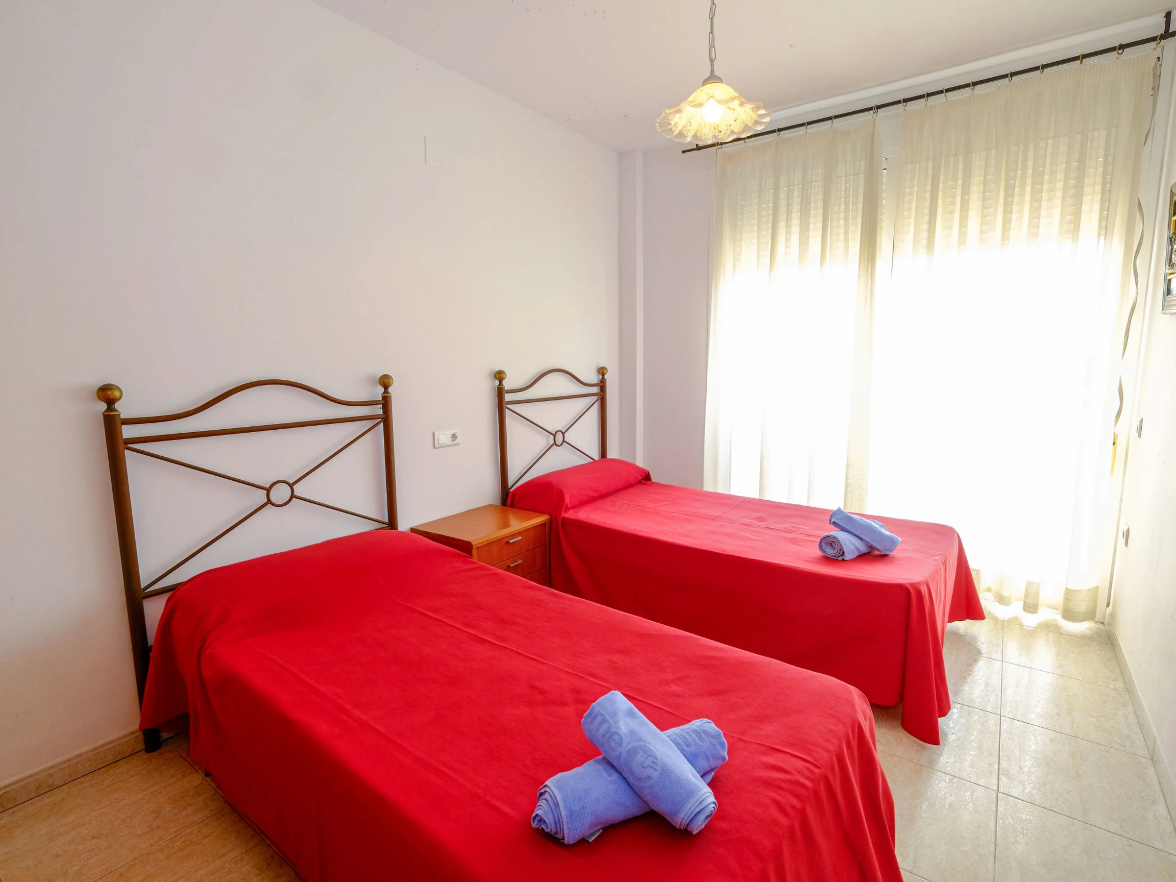 "Pasarela", apt 4 pièces 110 m2. Aménagement confortable et plaisant: séjour/salle à manger avec 1 divan-lit, table pour les repas et Télévision numérique. Sortie sur le balcon. 1 chambre avec 1 grand-lit (135 cm). Sortie sur le balcon. 1 chambre avec 2 lits (90 cm). 1 chambre avec 2 lits (90 cm). Cuisine (four, 4 plaques vitrocéramiques, grille-pain, micro-ondes, cafetière électrique). Bain/bidet/WC, douche/WC. Pas de chauffage. Vue sur la piscine. A disposition: lave-linge, fer à repasser, sèche-cheveux. Internet (Connexion WIFI, gratuit). [hidden] // Reg. Nr.: ESFCTU00004301000052856000000000000000000[hidden]2