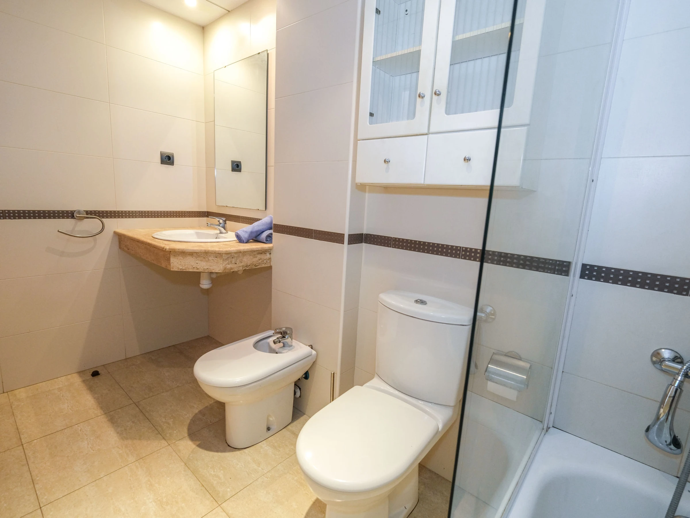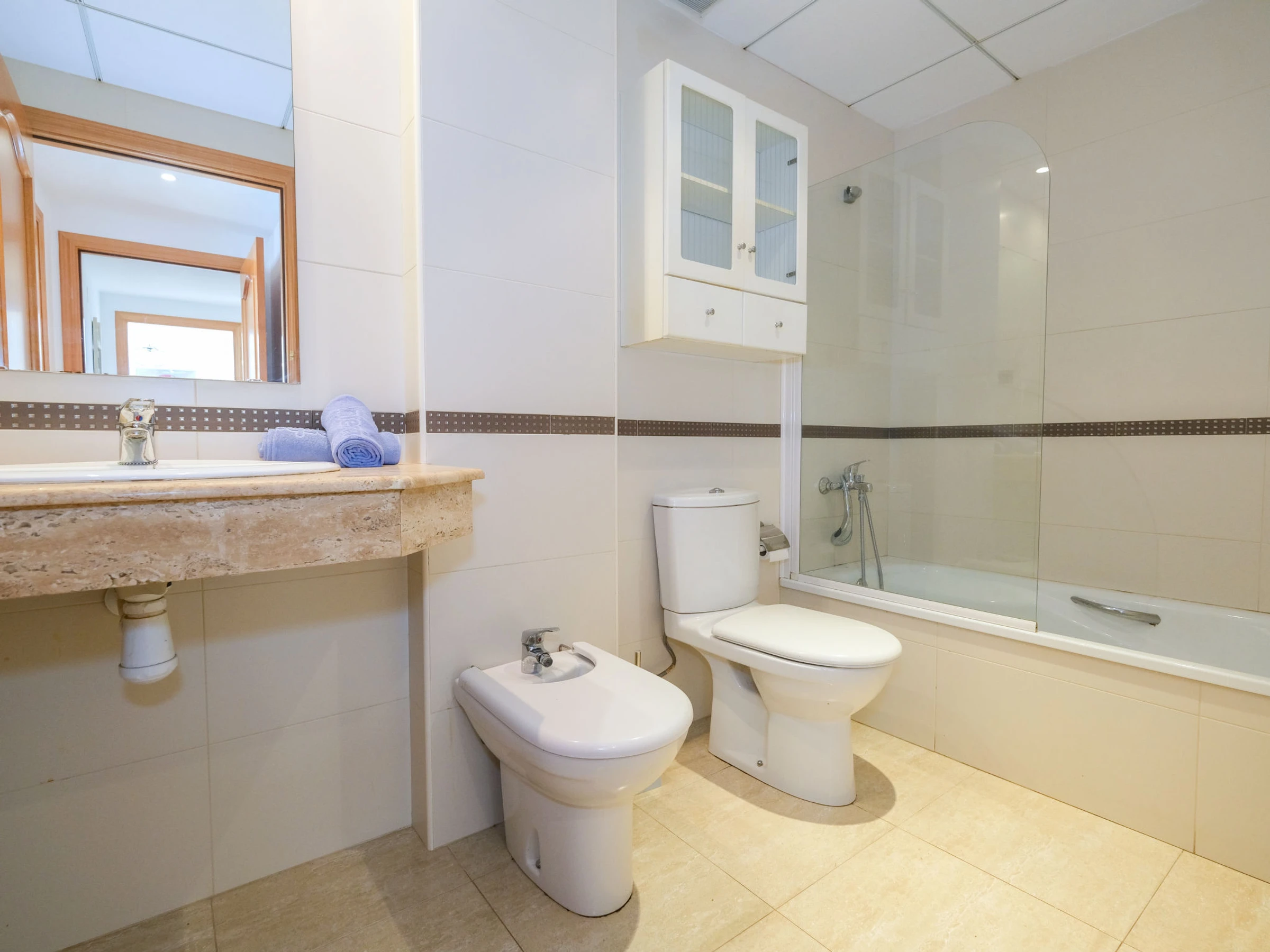 "Golden Beach", apt 3 pièces 68 m2. Aménagement confortable et plaisant: séjour/salle à manger avec Télévision numérique et air-conditionné. Sortie sur le balcon. 1 chambre avec 1 grand-lit (1 x 150 cm, longueur 190 cm), air-conditionné. Sortie sur le balcon. 1 chambre avec 2 lits (90 cm, longueur 190 cm), air-conditionné. Cuisine (four, lave-vaisselle, 4 plaques vitrocéramiques, bouilloire électrique, congélateur, gril, cafetière électrique) avec Télévision numérique. Bain/bidet/WC, douche/WC. Air-conditionné, chauffage à air chaud. Mobilier de balcon. Vue éloignée sur la mer. A disposition: fer à repasser, sèche-cheveux. [hidden] // Reg. Nr.: ESFCTU0000430100006219260000000000000000HUTTE [hidden]