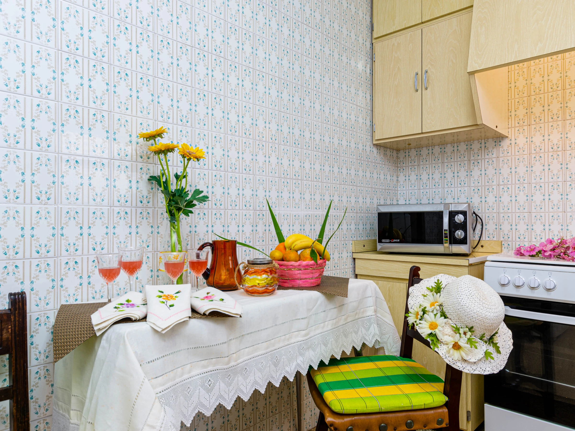 La cuisine indépendante, à gaz, est équipée avec réfrigérateur, micro-ondes, four, congélateur, vaisselle/couverts, ustensiles/cuisine, cafetière, friteuse, grille pain, bouilloire et presse-agrumes.