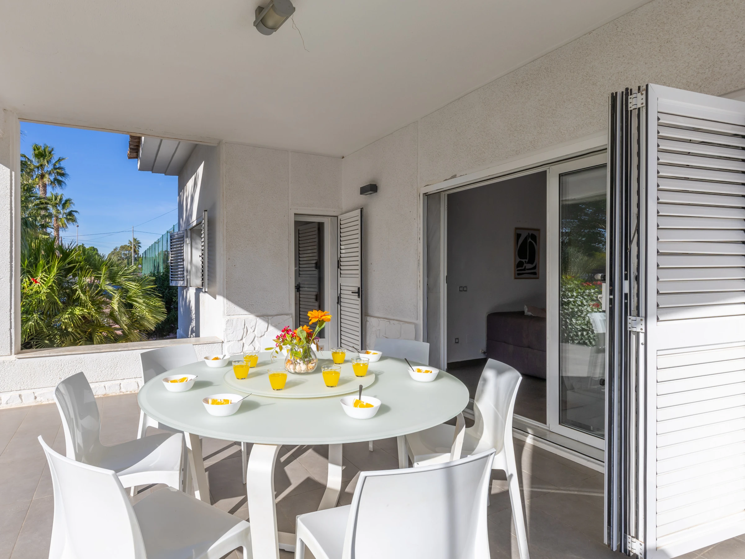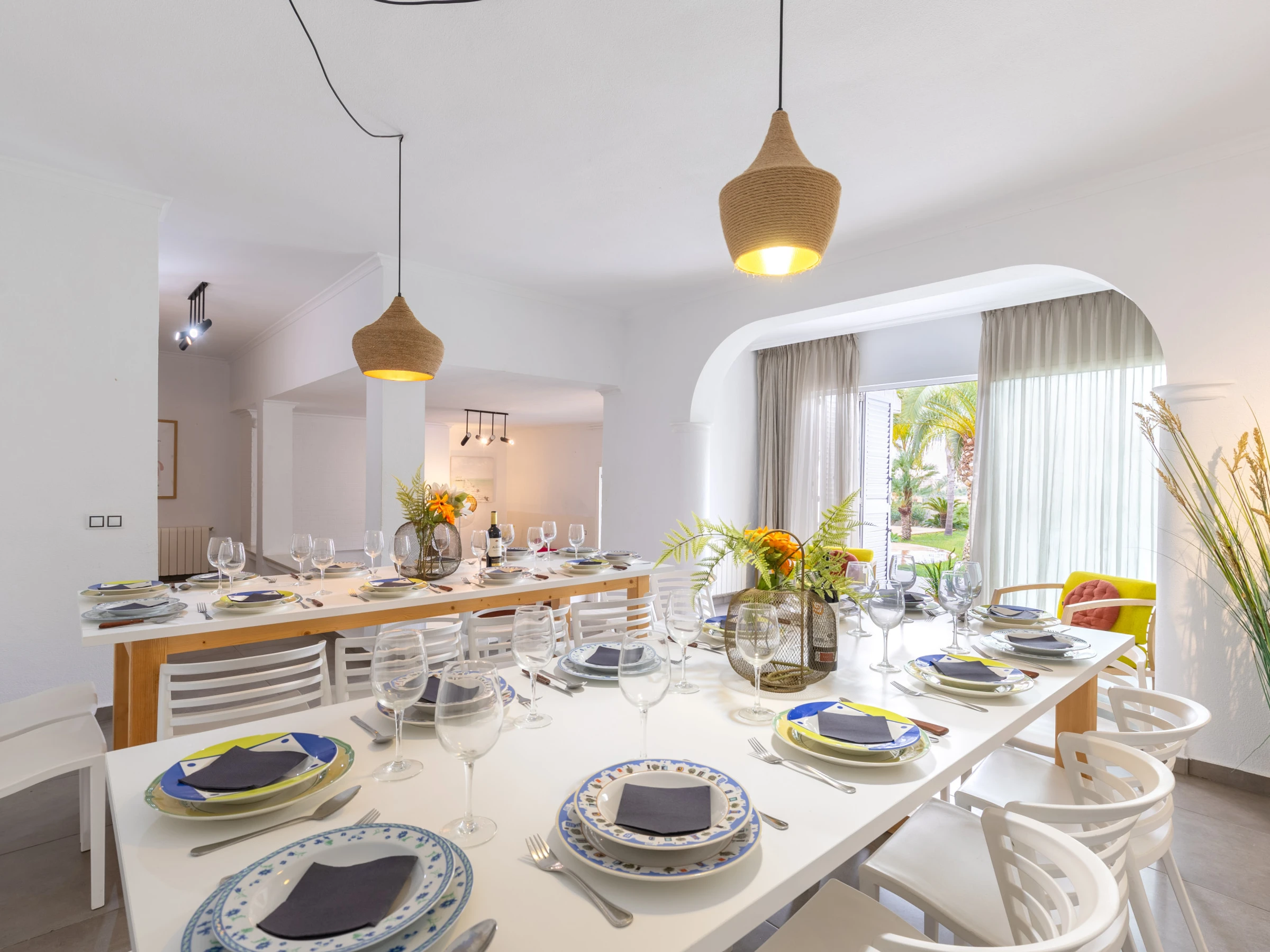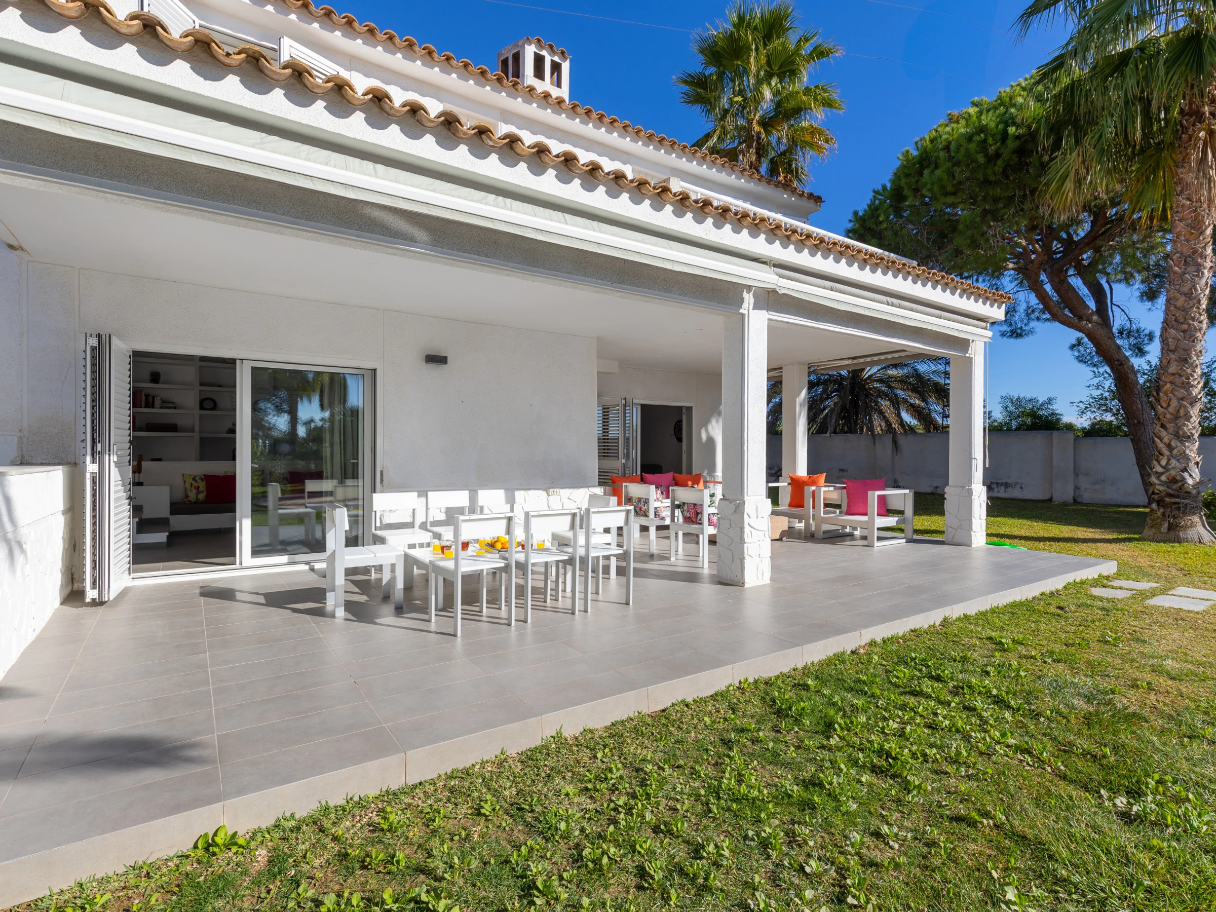 La villa donne sur le magnifique jardin avec des plantes indigènes et une pinède, et un garage couvert, mais le terrain a pour 10 véhicules. Au rez-de-chaussée, il a deux montées avec des escaliers sur les côtés opposés qui montent au premier étage dans l'une des 2 chambres avec balcon et salle de bain en suite et une salle de bain indépendante, la principale, dans l'autre escalier 3 chambres une d'entre eux avec salle de bain en suite, une villa entièrement rénovée et idéale pour passer vos vacances en famille ou entre amis, ils peuvent également organiser des fêtes.
