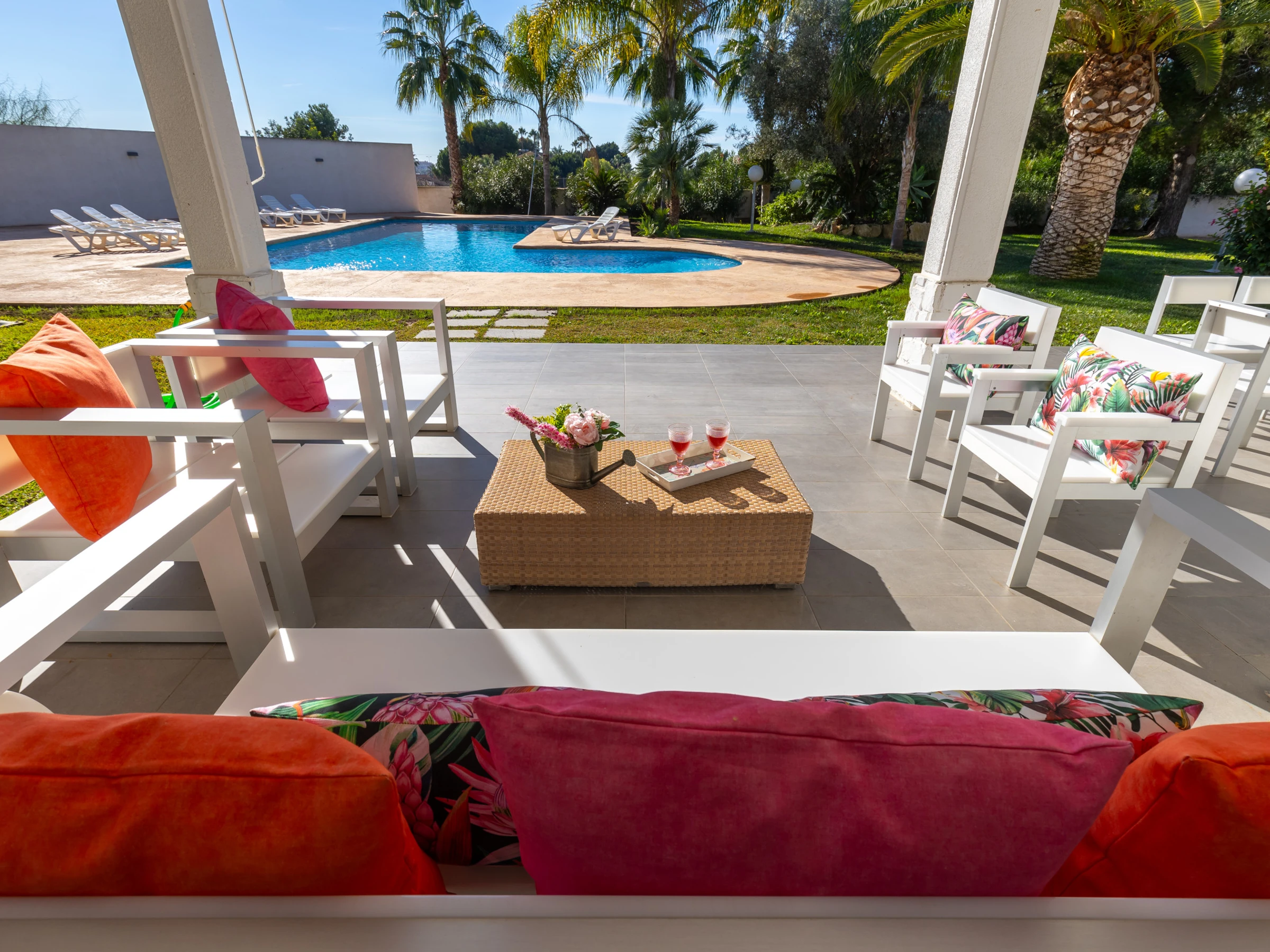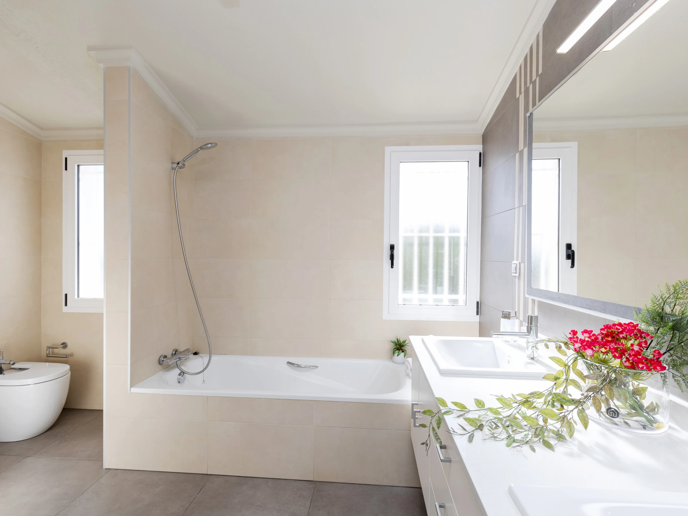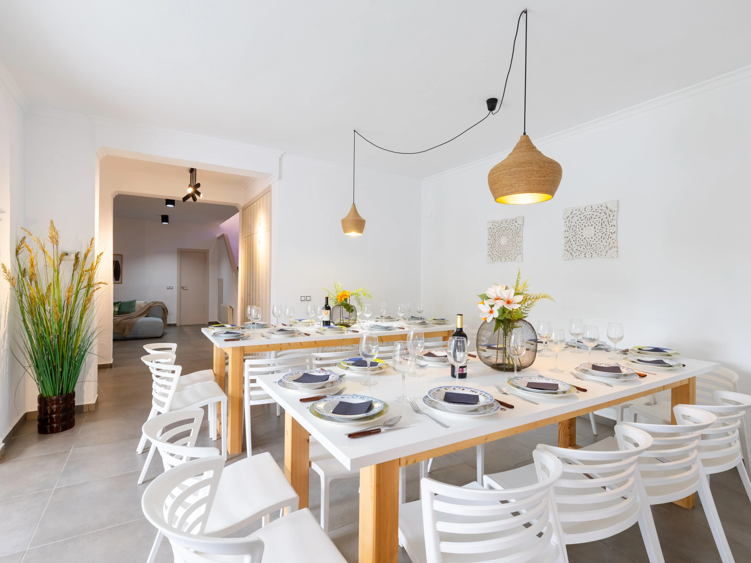 La villa donne sur le magnifique jardin avec des plantes indigènes et une pinède, et un garage couvert, mais le terrain a pour 10 véhicules. Au rez-de-chaussée, il a deux montées avec des escaliers sur les côtés opposés qui montent au premier étage dans l'une des 2 chambres avec balcon et salle de bain en suite et une salle de bain indépendante, la principale, dans l'autre escalier 3 chambres une d'entre eux avec salle de bain en suite, une villa entièrement rénovée et idéale pour passer vos vacances en famille ou entre amis, ils peuvent également organiser des fêtes.