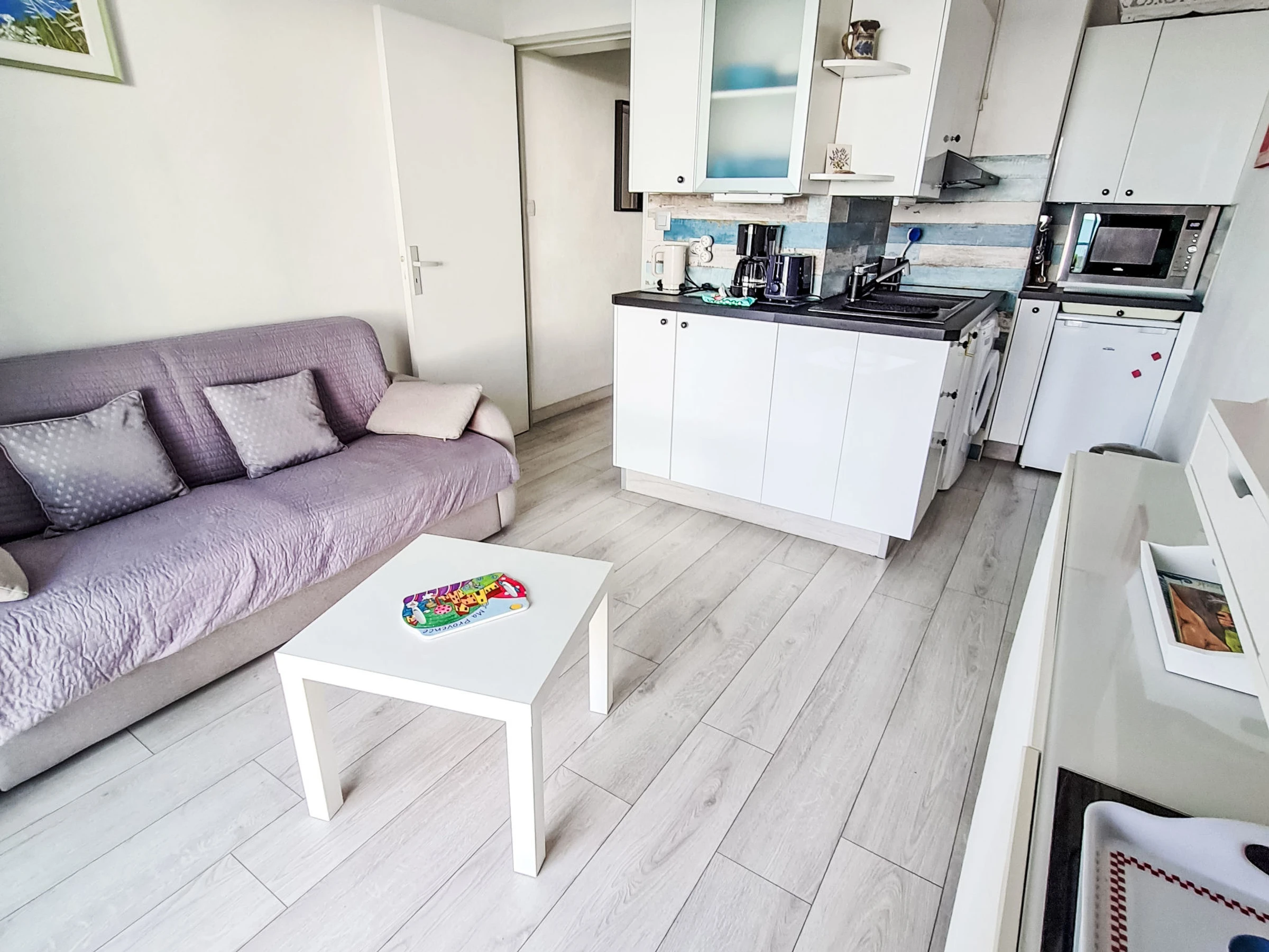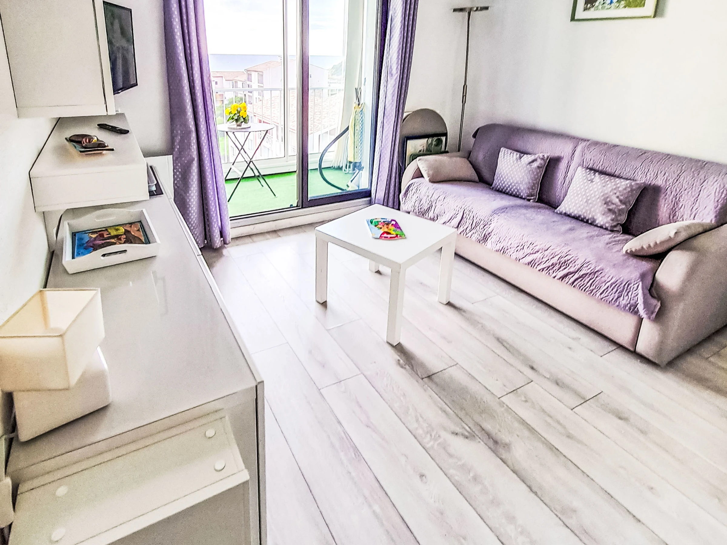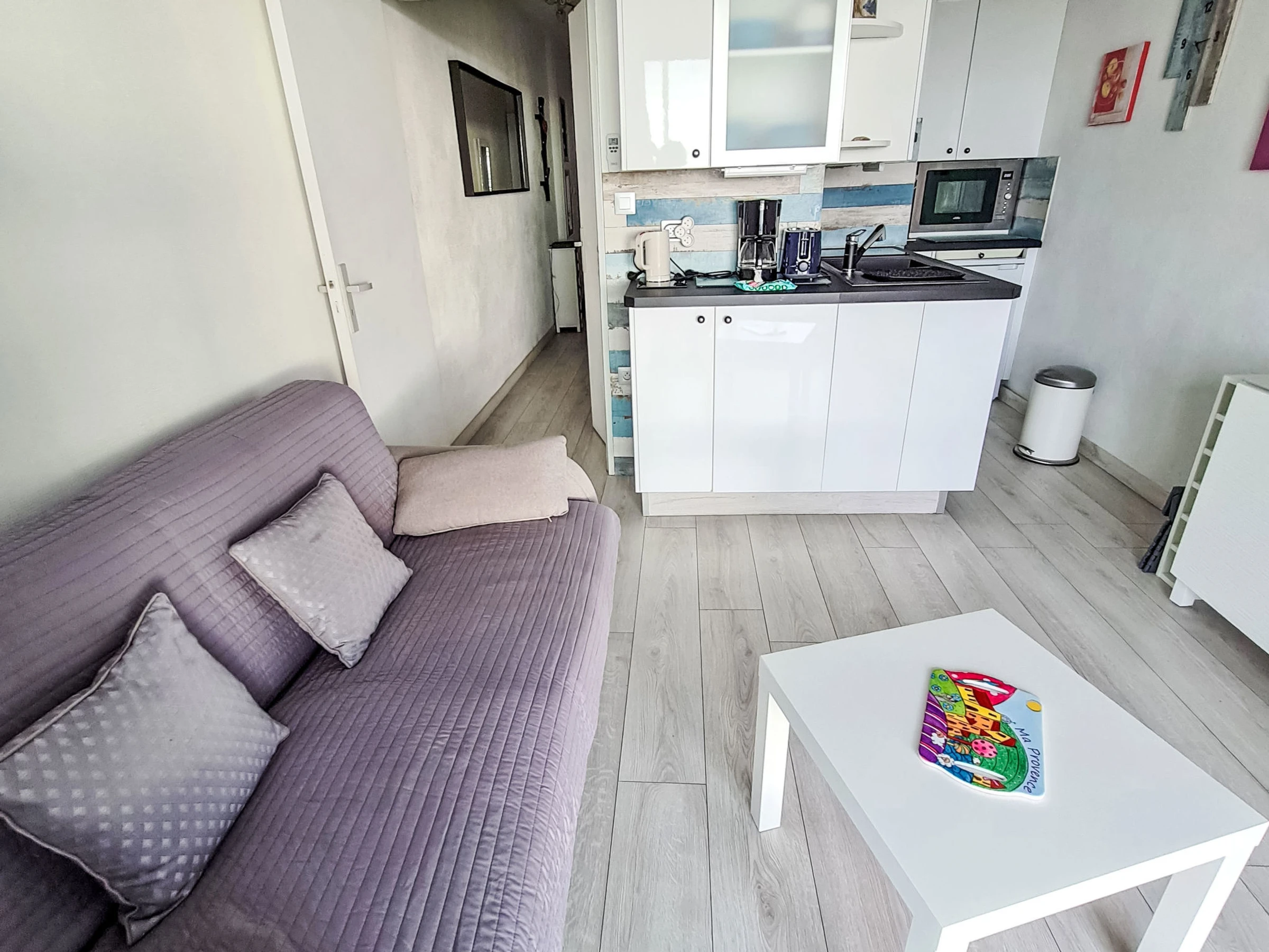 "Le Verdon", apt 2 pièces 28 m2 au 5ème étage. Rénové, aménagement confortable: séjour/salle à manger avec TV (écran plat). Sortie sur la véranda. 1 chambre avec 1 grand-lit (1 x 140 cm, longueur 190 cm). Coin cuisine (2 plaques de cuisson, four, grille-pain, bouilloire électrique, congélateur, cafetière électrique, Capsules pour machine à café (NESPRESSO) (NON INCLUSES), combiné micro-ondes). Douche, WC séparé. Chauffage électrique. Meubles de terrasse, loggia. Belle vue sur la mer. Place de parking. Veuillez noter: TV seulement FR. Annonce d'un particulier (art 155, IV du CGI).