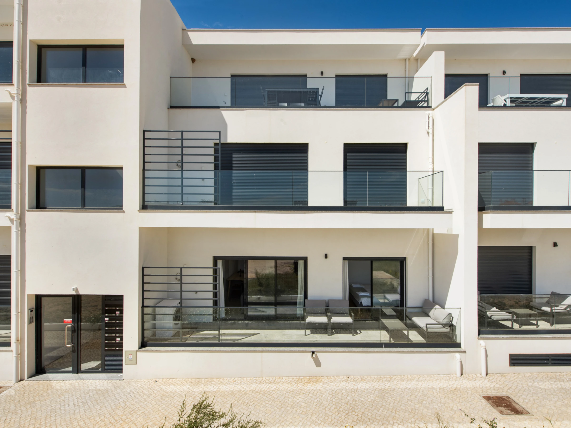 Idéal pour deux personnes, il dispose d'une chambre accueillante, d'une salle de bain avec une douche spacieuse, d'une cuisine entièrement équipée et d'un salon lumineux en open space avec un accès direct à un balcon vitré — parfait pour profiter de la lumière naturelle et du climat algarvien, même avec une certaine exposition.