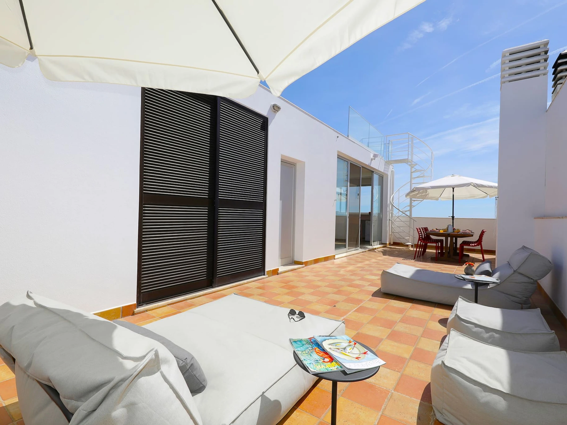 Sortez du salon élégant pour accéder à une piscine privée, dotée de sièges confortables et de transats, idéale pour prendre un trempage rafraîchissant après une journée à la plage. Montez l'escalier intérieur jusqu'à votre magnifique terrasse sur le toit, où des équipements de cuisine pratiques font des repas en plein air un véritable délice. Avec une vue panoramique qui embrasse l'esprit de la ville de Tavira et ses tranquilles marais salants, vous pouvez profiter de repas en plein air pour jusqu'à 8 invités, que ce soit sous le ciel ouvert ou à l'ombre. Un barbecue à gaz moderne est également inclus, donc que ce soit pour dîner ou simplement pour un endroit serein pour se détendre et s'adonner à une lecture paisible sur les sièges confortables, vous ne pouvez pas trouver mieux que cette terrasse sur le toit !