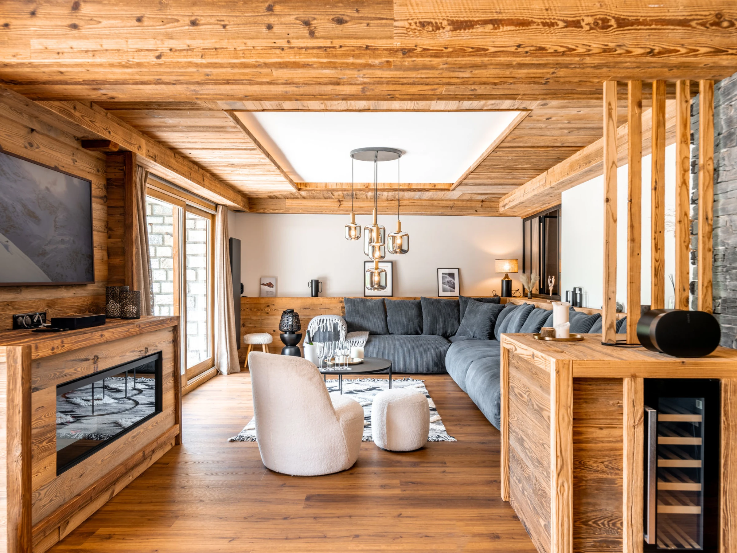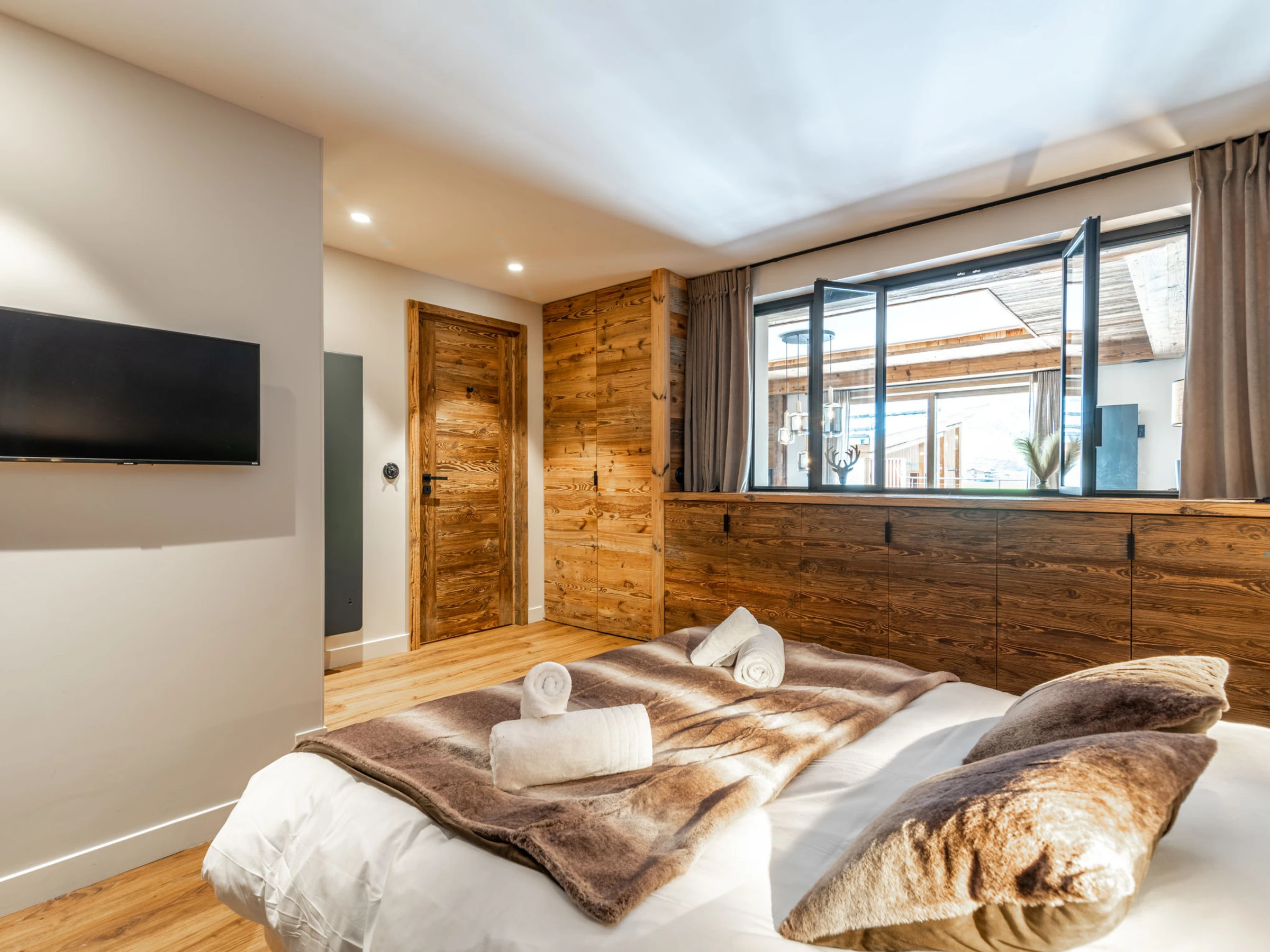 "Le Blanc des Cimes", apt 3 pièces 142 m2 au 2ème étage. Spacieux, complètement rénové en 2023, aménagement luxueux et de bon goût: salon avec cheminée, TV et chaînes de TV internationales (écran plat), volet roulant électrique. Sortie sur la terrasse. Salle à manger avec baie vitrée. 1 chambre avec 1 lit (80 cm, longueur 190 cm), 1 grand-lit (1 x 180 cm, longueur 200 cm), douche/WC, TV, TV (satellite) et volet roulant électrique. Sortie sur la terrasse. 1 chambre, fenêtre donnant sur le séjour avec 1 lit (80 cm, longueur 190 cm), 1 grand-lit (1 x 180 cm, longueur 200 cm), douche/WC et TV (écran plat). Bagagerie avec lavabo et chauffe eau (999 litres). Entrée avec WC séparés. Grande cuisine ouverte (four, lave-vaisselle, 4 plaques à induction, grille-pain, bouilloire électrique, micro-ondes, congélateur, cafetière électrique, Capsules pour machine à café (Nespresso) (NON INCLUSES), appareil à raclette, ilot de cuisine, service à fondue (fondue au fromage)). Grande terrasse 80 m2, situation sud-est. Meubles de terrasse. Très belle vue panoramique sur le lac et les montagnes. A disposition: lave-linge, sèche-linge, fer à repasser, sèche-cheveux. Internet (Connexion WIFI). Garage. Veuillez noter: logement non-fumeur. Détecteur de fumée. Annonce d'un particulier (art 155, IV du CGI).