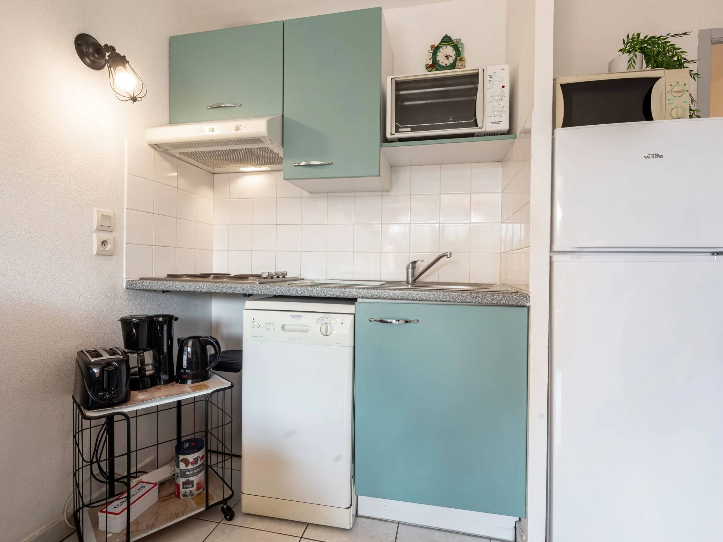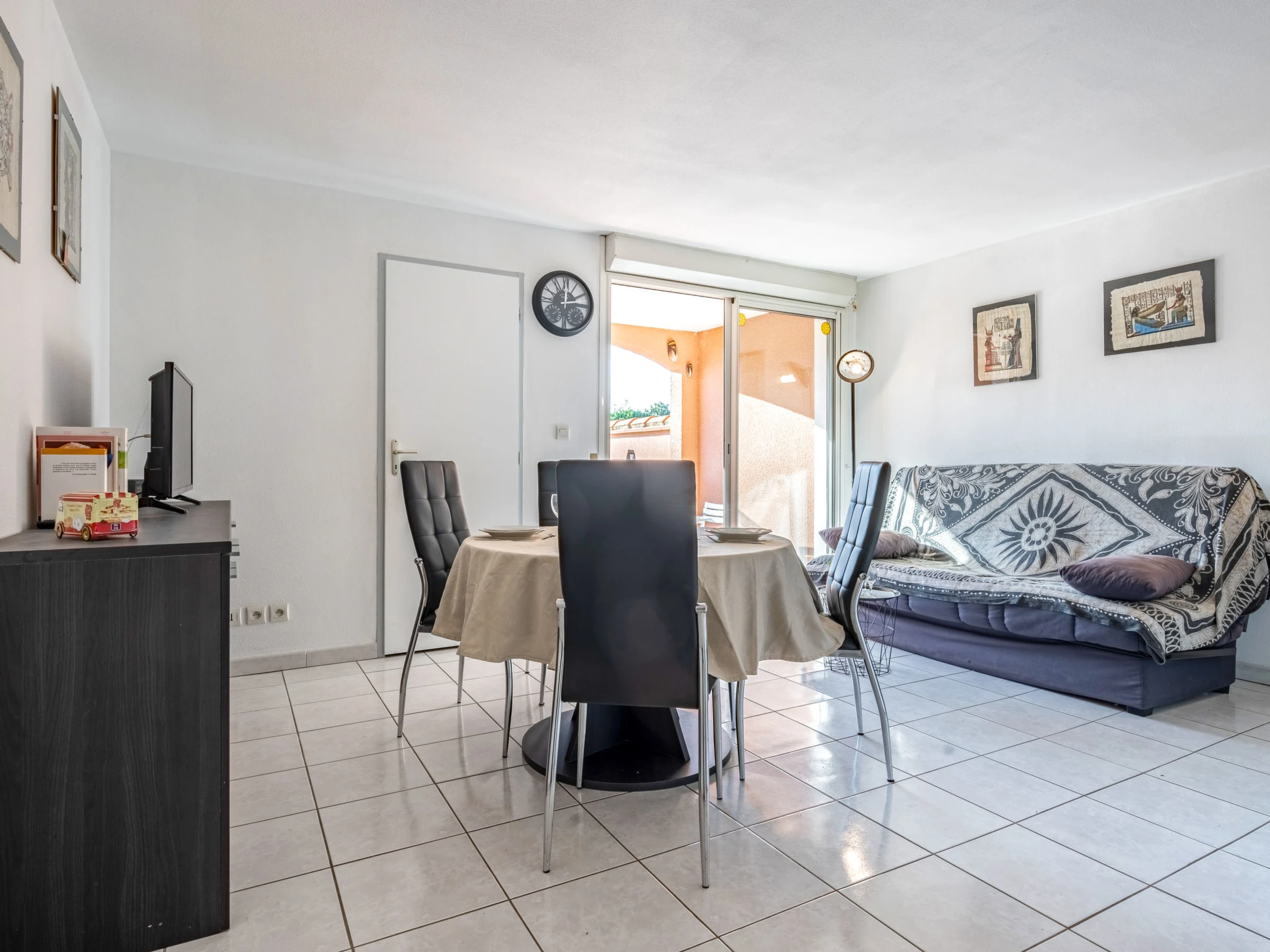 Torreilles Plage à 7 km de Canet plage: Résidence moderne "Village Marin Catalan", de 2 étages, année de construction 2003. Dans le quartier de Torreilles Plage, à 500 m de la mer, à 500 m de la plage. Magasins, magasin d'alimentation 300 m, supermarché 1 km, centre commercial, restaurant 300 m, boulangerie 500 m, arrêt de bus 150 m, gare ferroviaire "de Perpignan" 20 km, plage de sable "Torreilles Plage" 500 m, parc "Water Jump" 500 m, plage naturiste 1 km. Port plaisance 5 km, terrain de golf (18 trous) 15 km, tennis 8 km, tennis couvert 8 km, centre équestre 7 km, piste cyclable 2 km. Attractions à proximité: Perpignan 15 km, Collioure 30 km, Banyuls 40 km, Espagne 40 40 km, Andorre 180 km, Barcelone 200 km. Les lacs connus sont facilement accessibles: Lac de Villeneuve de la Raho 20 km, Lac de St Jean Pla de Corts 40 km, Gorges de Gouleyrous 55 km. Région de randonnées: Abbaye de St Martin du Canigou 70 km, Pic du Canigou 77 km, Lac des Bouillouses 105 km. Veuillez noter: sans ascenseur. La remise des clés a lieu à l’agence de CANET, 10 km.