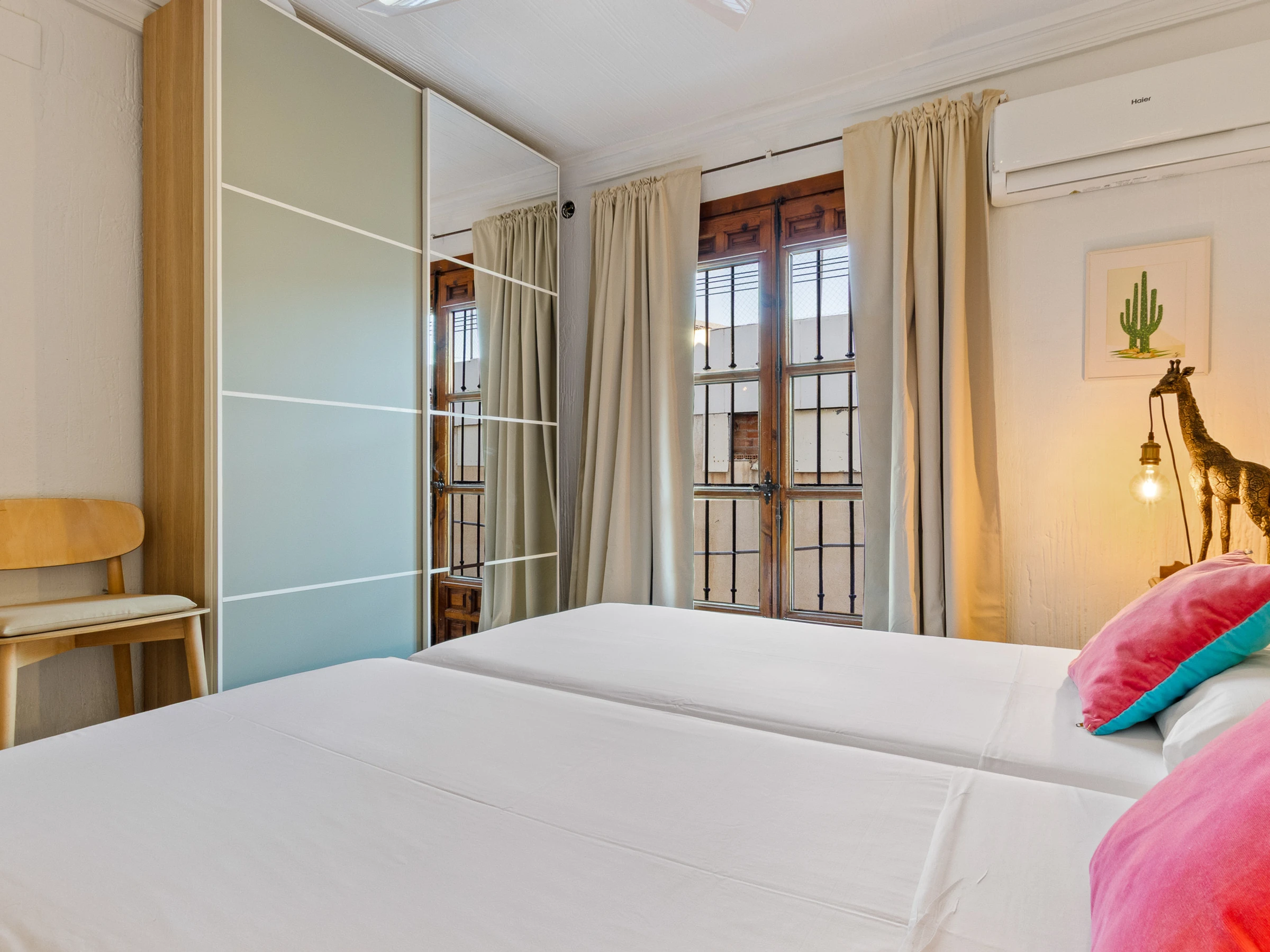 Elle dispose de 2 m² de terrasse, lave-linge, fer à repasser, accès internet (wifi), sèche-cheveux, chauffage central, climatisation dans tout le logement, 2 ventilateurs, 1 Télévision.