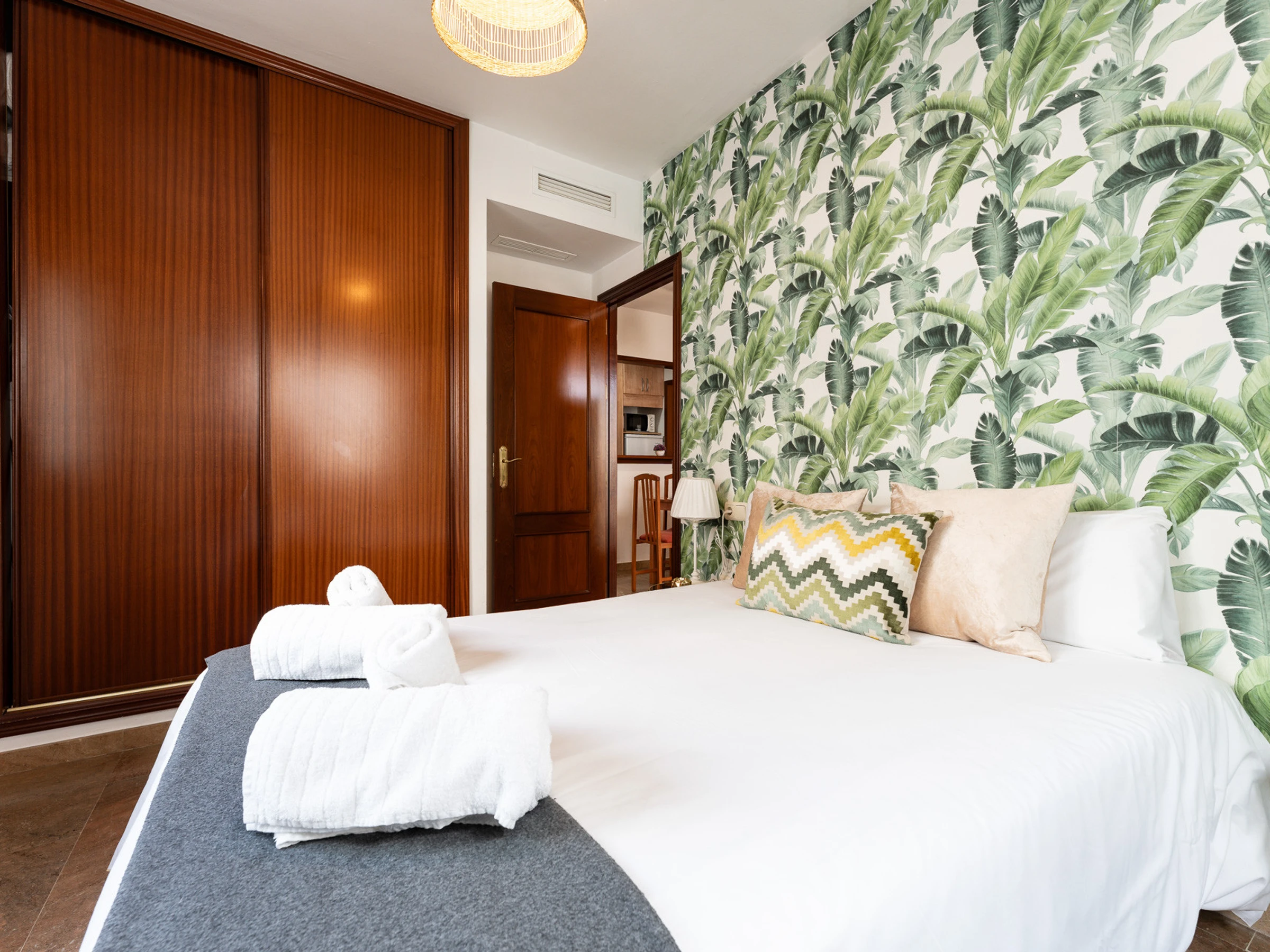 L'appartement comprend une chambre principale avec un lit double et un canapé-lit double supplémentaire, garantissant suffisamment d'espace pour tout le monde.