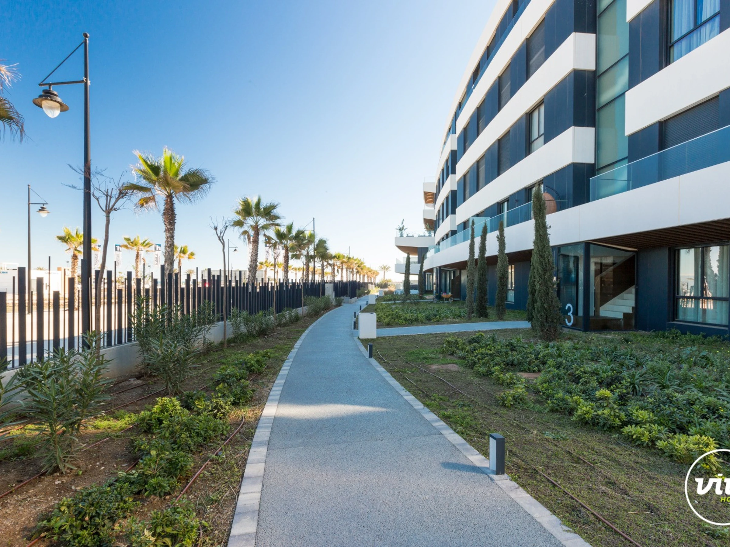 Logement de 46 m² joli et moderne, situé en front de plage eten première ligne de golf, avec vue sur la mer et la montagne.