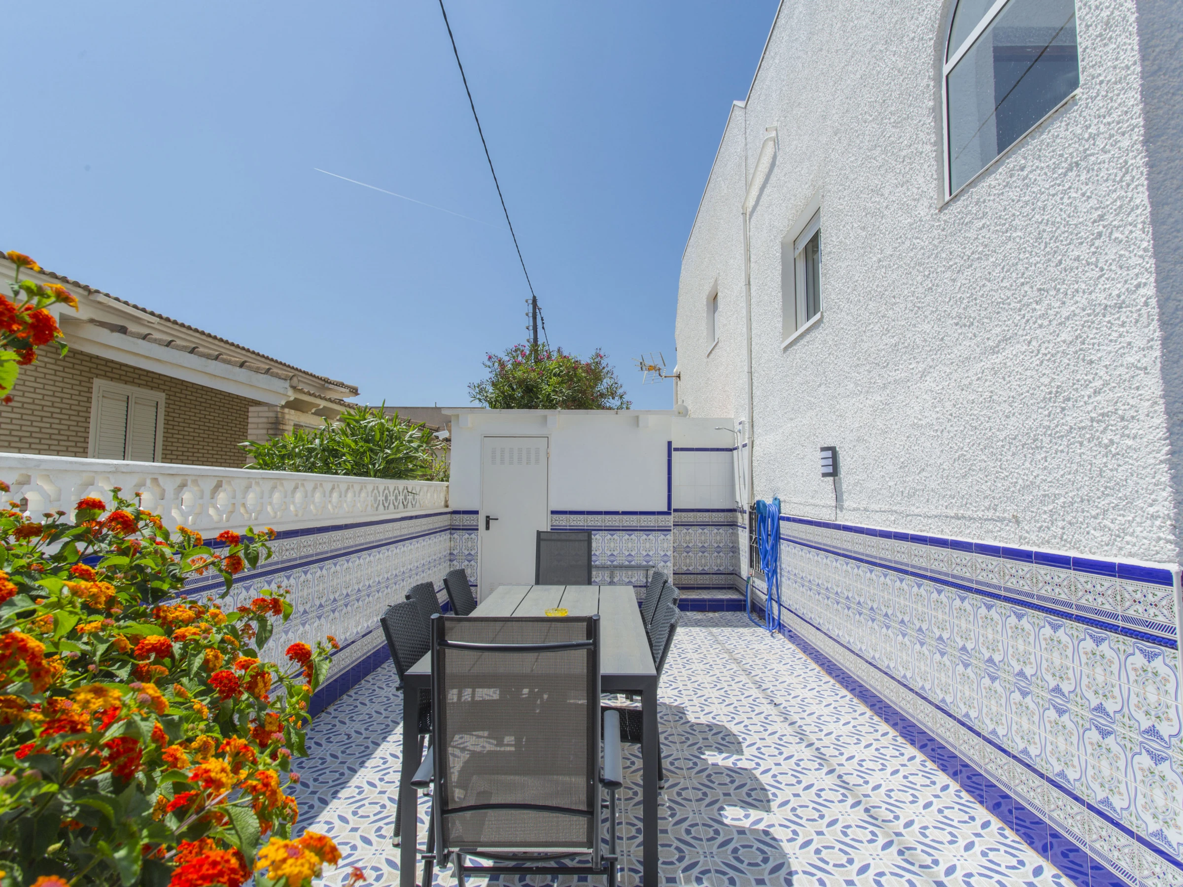 Belle grande maison jumelée de 2-3 étages et une très grande terrasse avec table et chaises, en plus, une douche extérieure, située à La Mata très proche de la mer.
