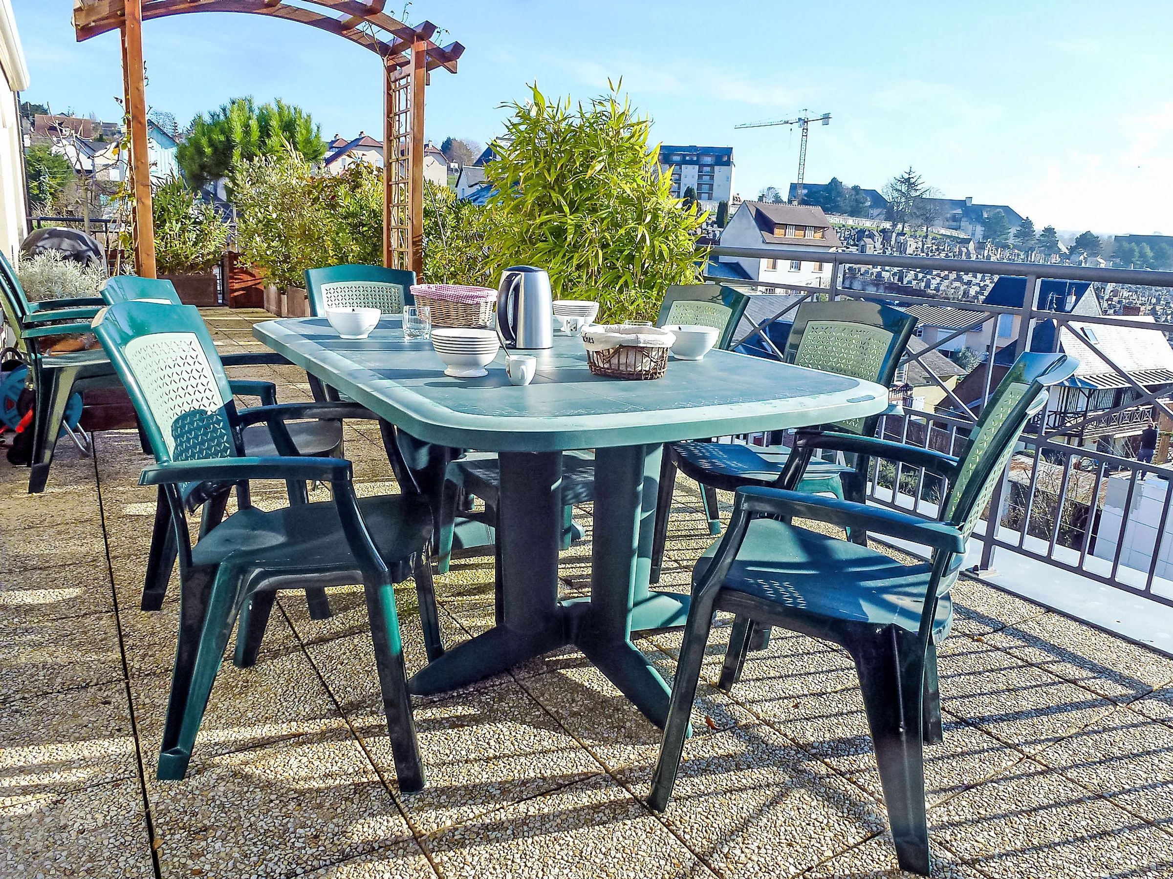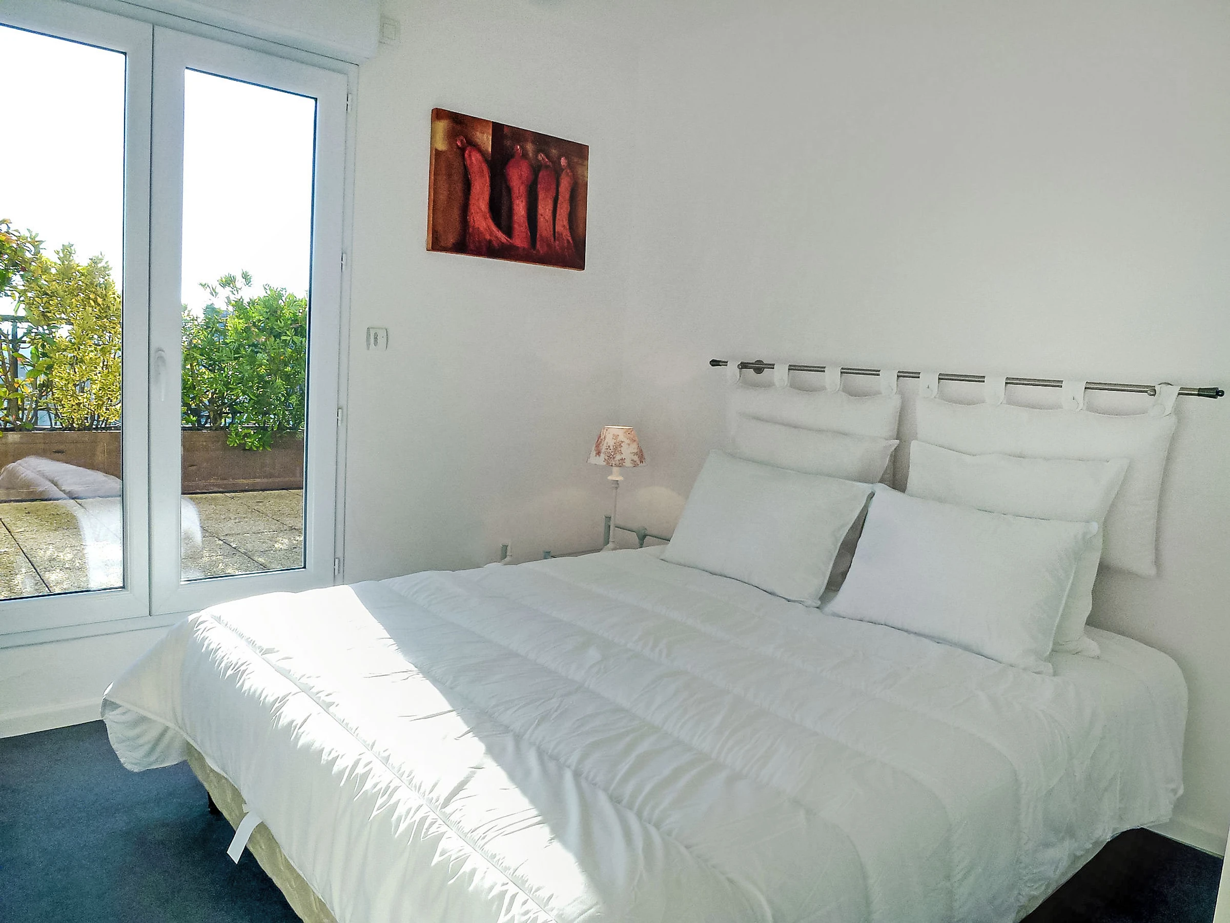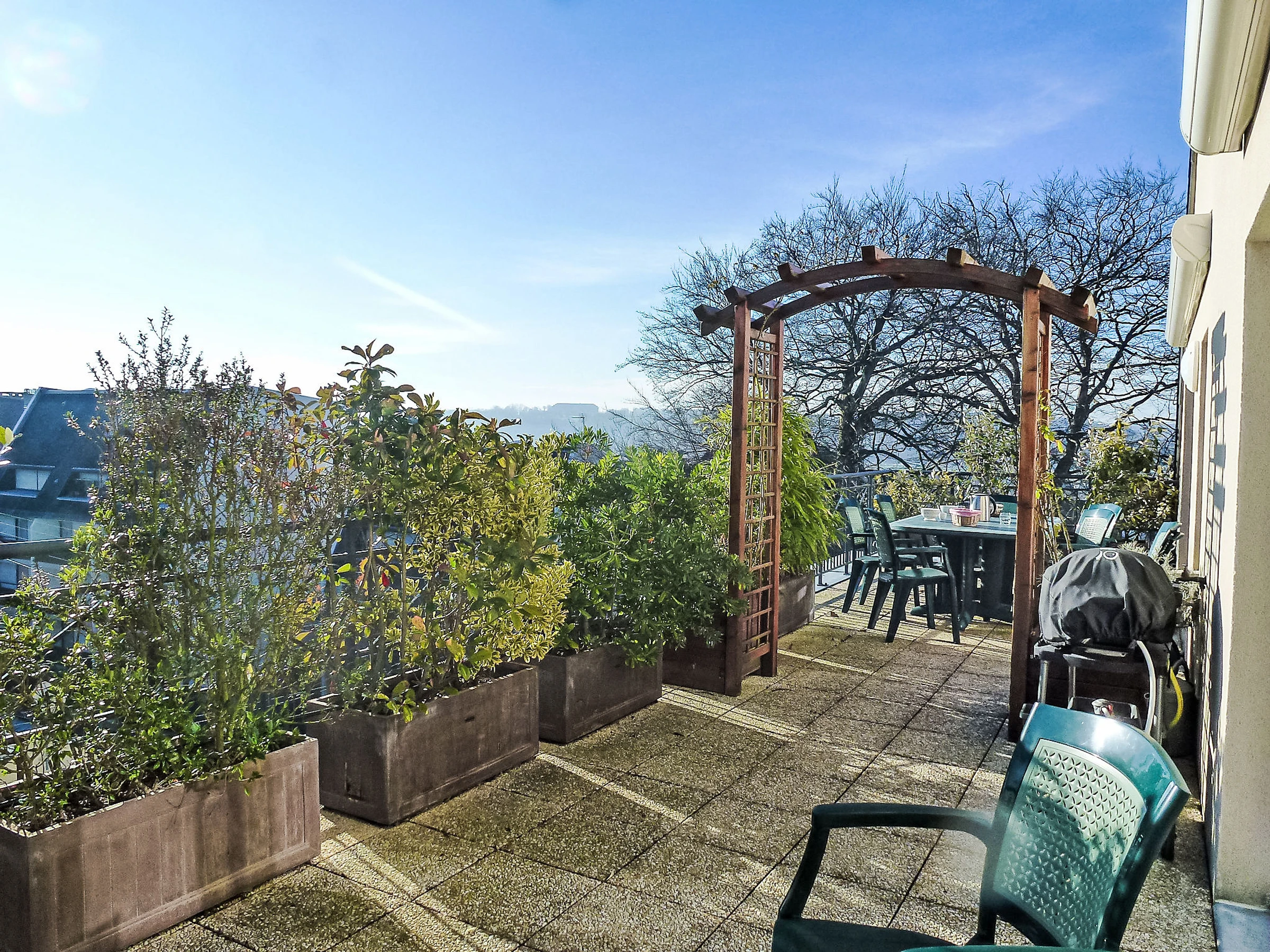 Apt 3 pièces 80 m2 au 4ème étage. Aménagement très confortable et de bon goût: entrée avec WC séparés. Séjour/salle à manger avec TV (écran plat). Sortie sur la terrasse. 2 chambres avec baie vitrée, chaque chambre avec: 1 grand-lit (1 x 160 cm, longueur 200 cm). Sortie sur la terrasse. Cuisine ouverte (four, lave-vaisselle, 3 plaques à induction, grille-pain, bouilloire électrique, micro-ondes, congélateur, cafetière électrique). Douche, WC séparé, double vasque. Chauffage électrique. Grande terrasse 37 m2. Meubles de terrasse, barbecue. Très belle vue panoramique sur les alentours. A disposition: lave-linge, sèche-linge. Internet (Connexion WIFI, gratuit). Place de parking (couvert, 1 Voiture), hauteur 190 cm, largeur 240 cm. Veuillez noter: logement non-fumeur. Détecteur de fumée. [hidden]
