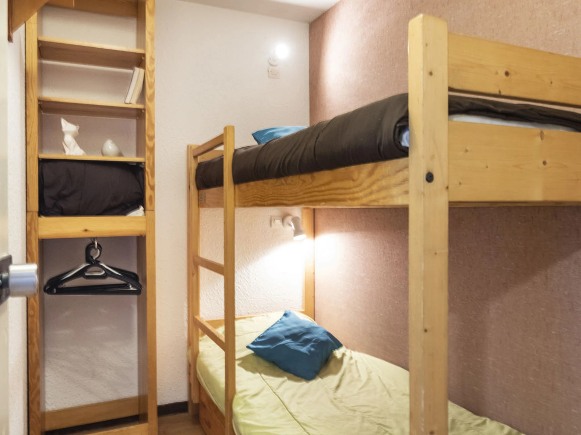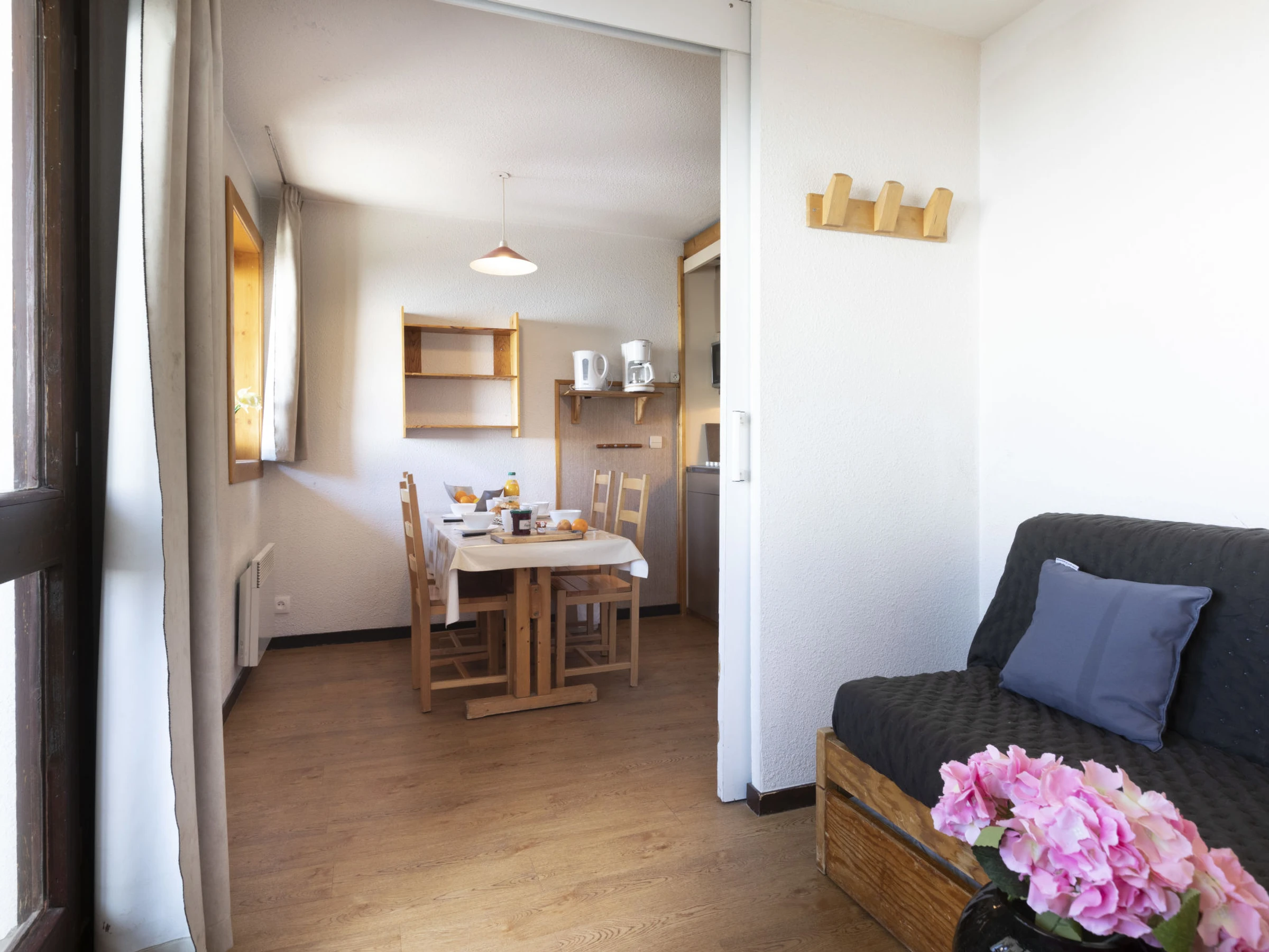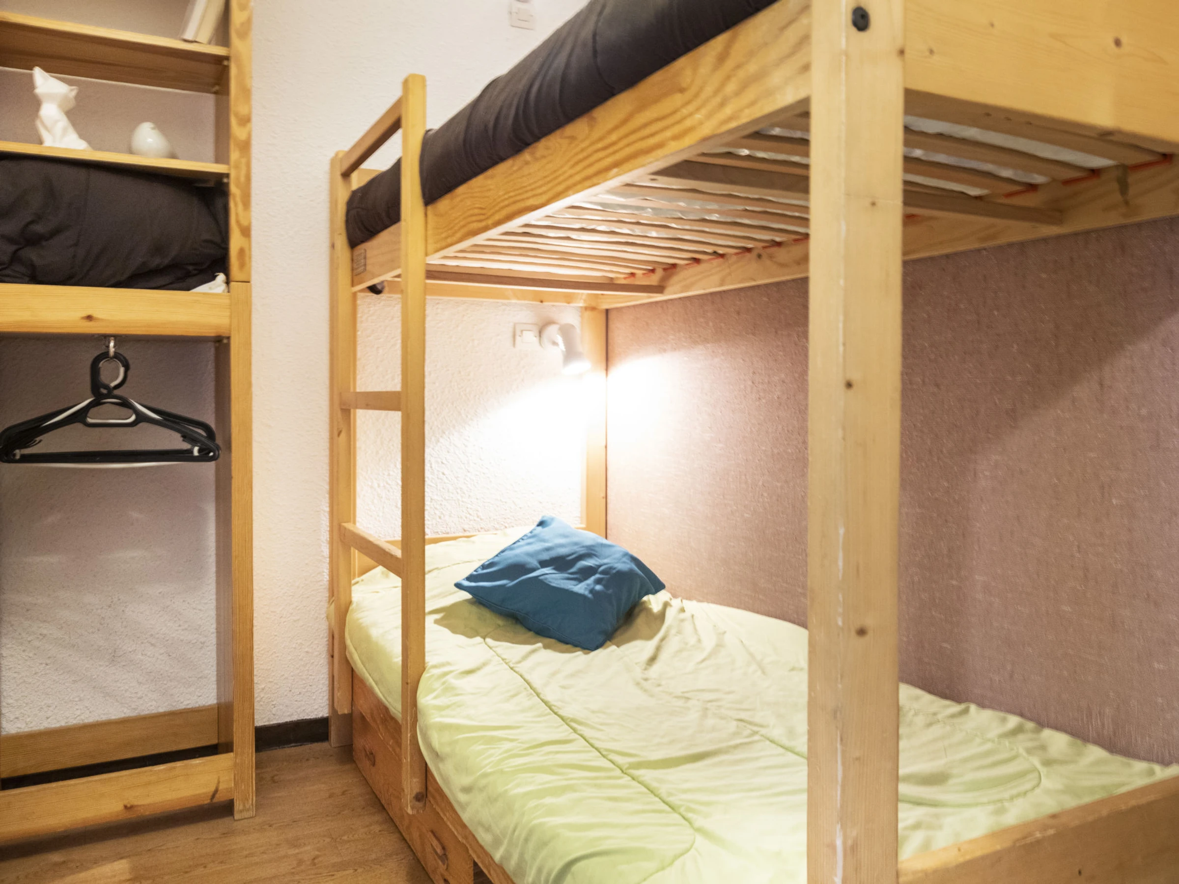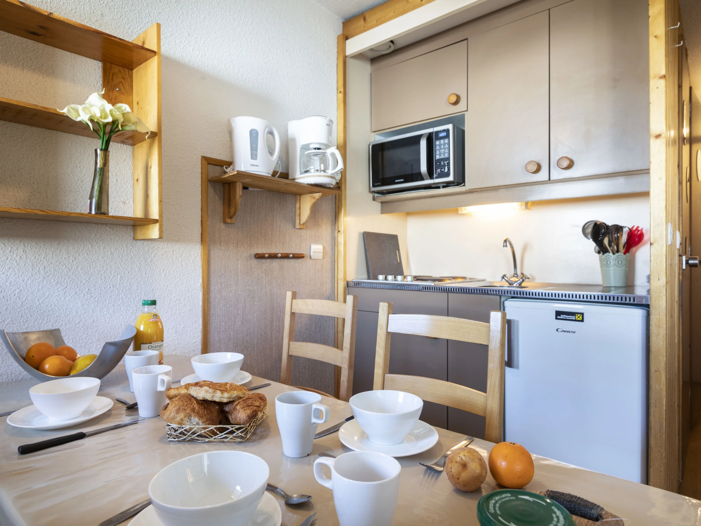 "Arcelle 308", apt 2 pièces 22 m2 au 3ème étage, situation sud-ouest. Clair, partiellement rénové en 2024: séjour/salle à manger avec radiateur électrique. 1 petite chambre 6 m2 avec porte coulissante avec 1 lit gigogne (2 pers. 2 x 80 cm, longueur 190 cm), TV (écran plat). Sortie sur la véranda, orientée sud-ouest. Cabine avec 1 x 2 lits superposés (80 cm, longueur 190 cm). Coin cuisine (4 plaques de cuisson, bouilloire électrique, cafetière électrique, combiné micro-ondes) avec table pour les repas, radiateur électrique. Douche, WC séparé. Belle vue. A disposition: Internet (Connexion WIFI, en sus). Veuillez noter: logement non-fumeur. Maximum 1 animal/ chien autorisé. Détecteur de fumée. Au lieu d'une chambre fermée, des espaces de couchage sont situés dans une zone ouverte (galerie, alcôve...). [hidden]