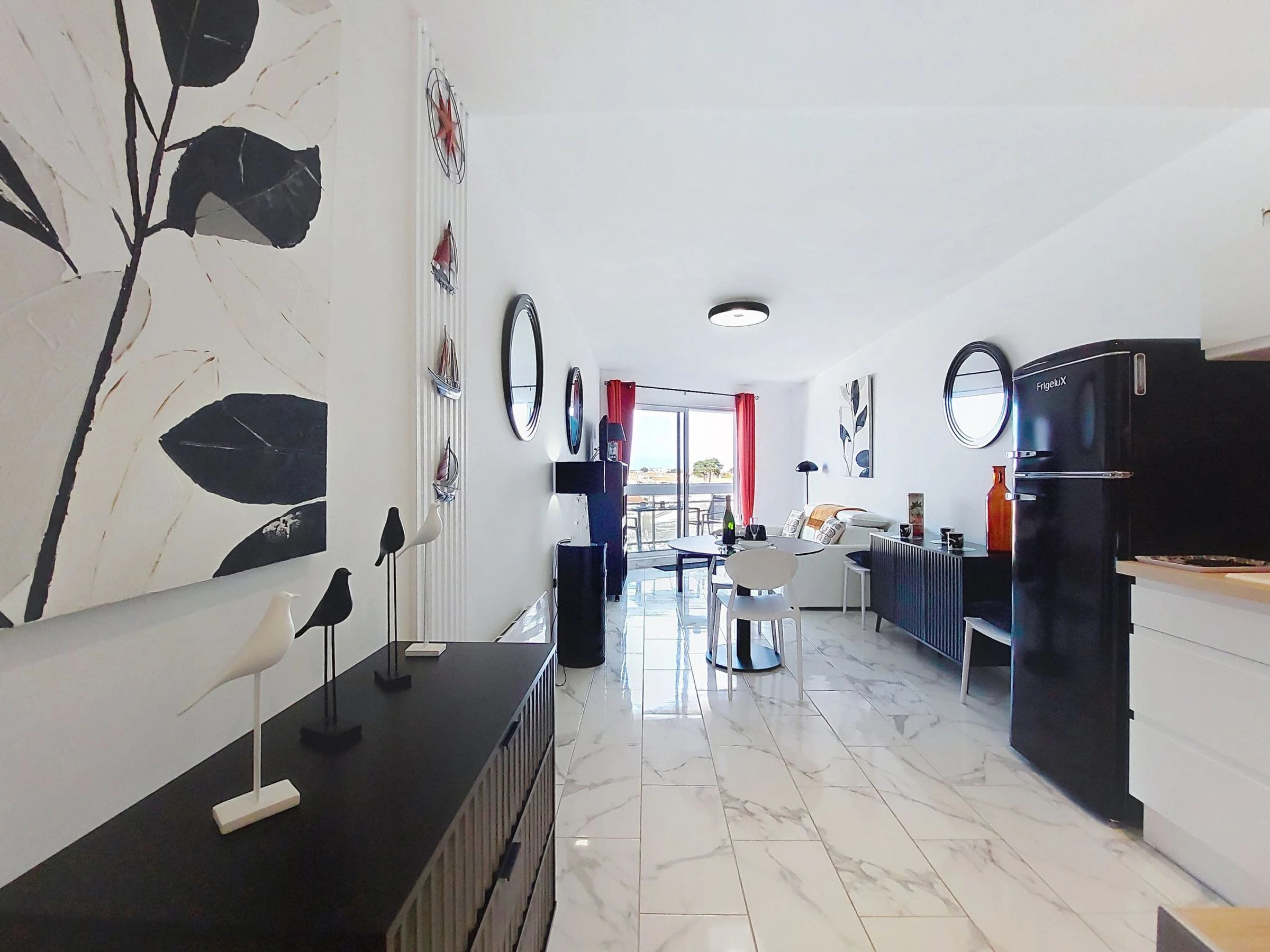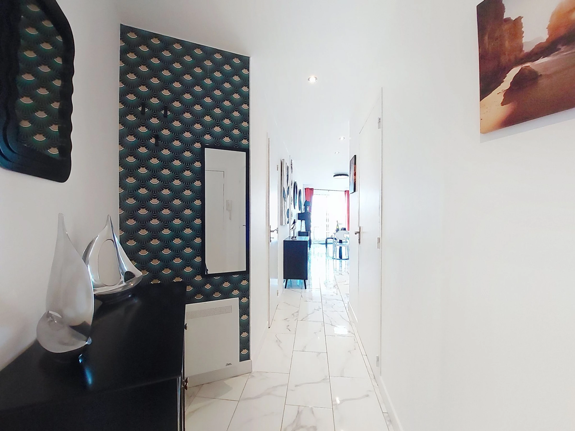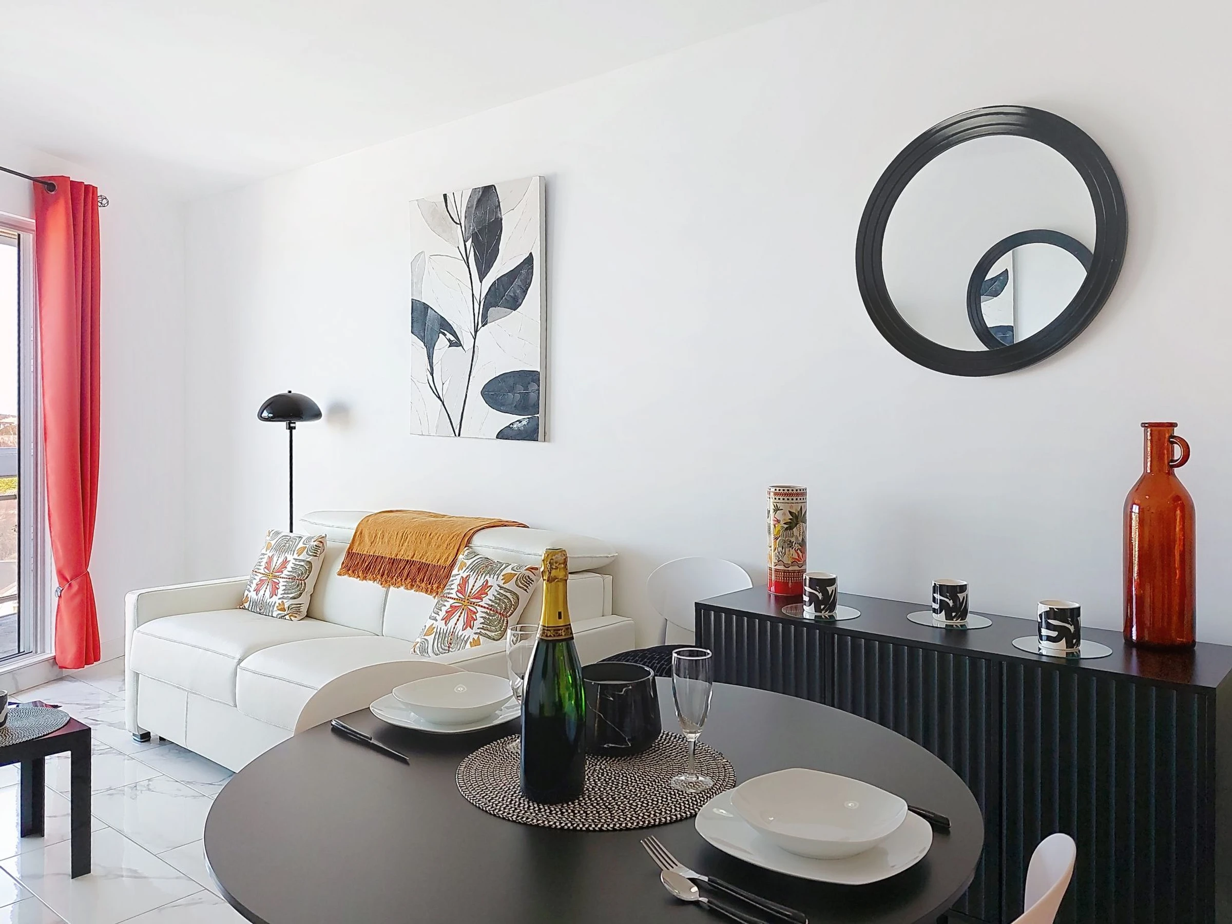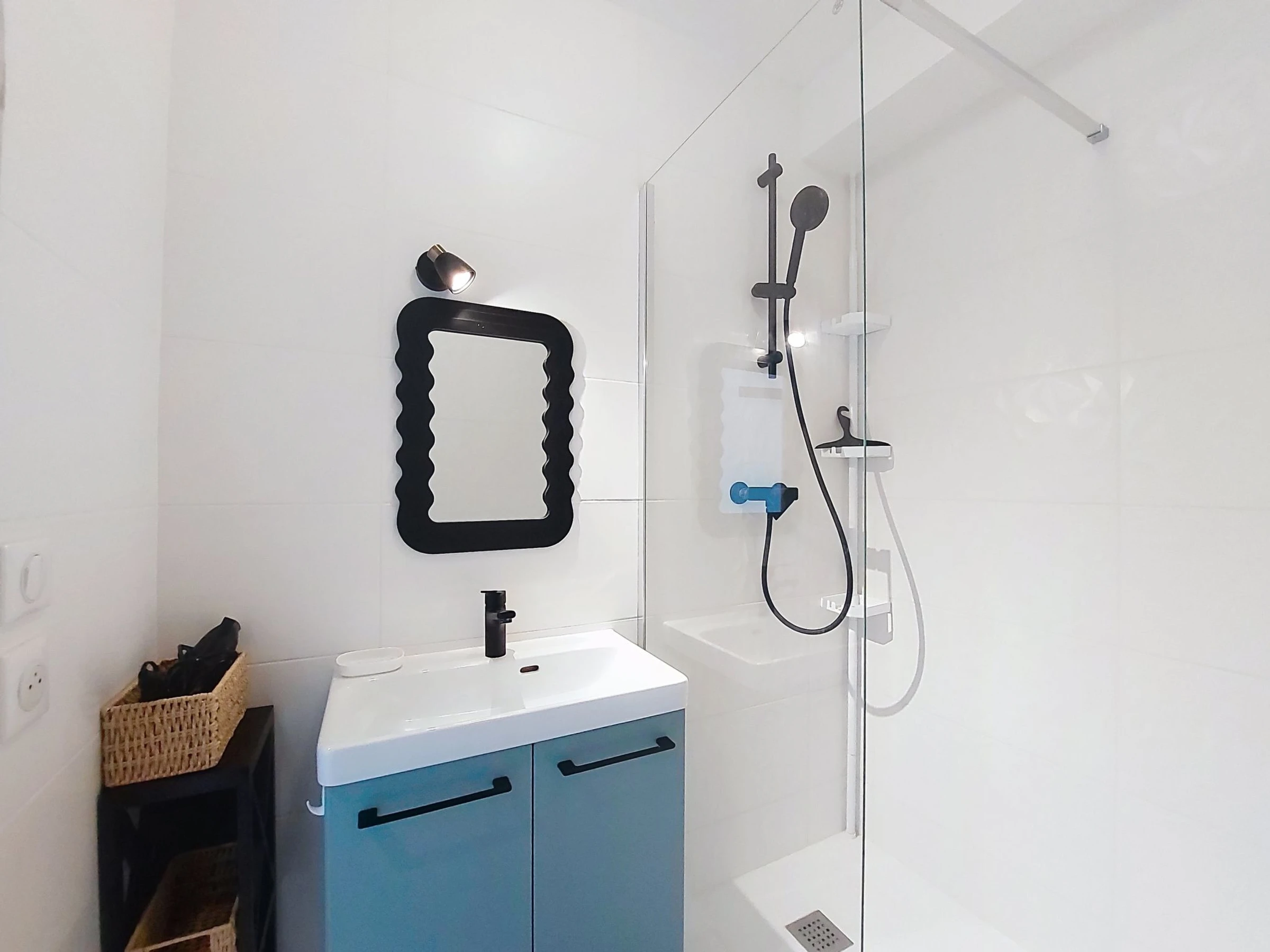 Studio 33 m2 au 4ème étage. Complètement rénové en 2025, aménagement moderne: séjour avec 1 divan-lit double (1 x 140 cm, longueur 190 cm), TV (écran plat). Sortie sur le balcon. Coin cuisine (four, 4 plaques à induction, grille-pain, bouilloire électrique, micro-ondes, congélateur, cafetière électrique, Capsules pour machine à café (Senseo) (NON INCLUSES)). Douche, WC séparé. Chauffage électrique. Balcon 7 m2. Mobilier de balcon. Vue latérale sur la mer. A disposition: lave-linge, fer à repasser. Internet (Connexion WIFI, gratuit). Place de parking No 8. Veuillez noter: détecteur de fumée. Annonce d'un particulier (art 155, IV du CGI).