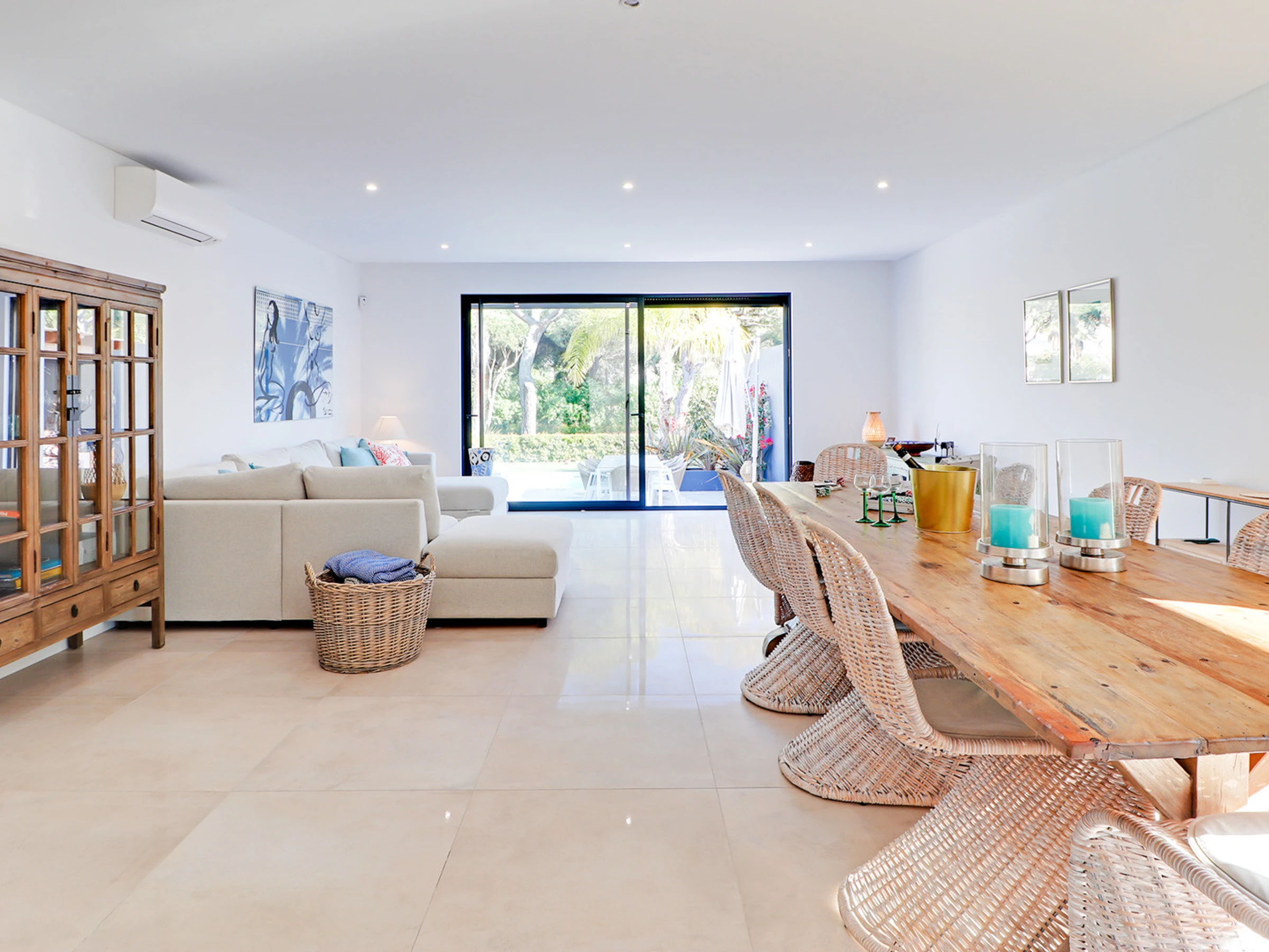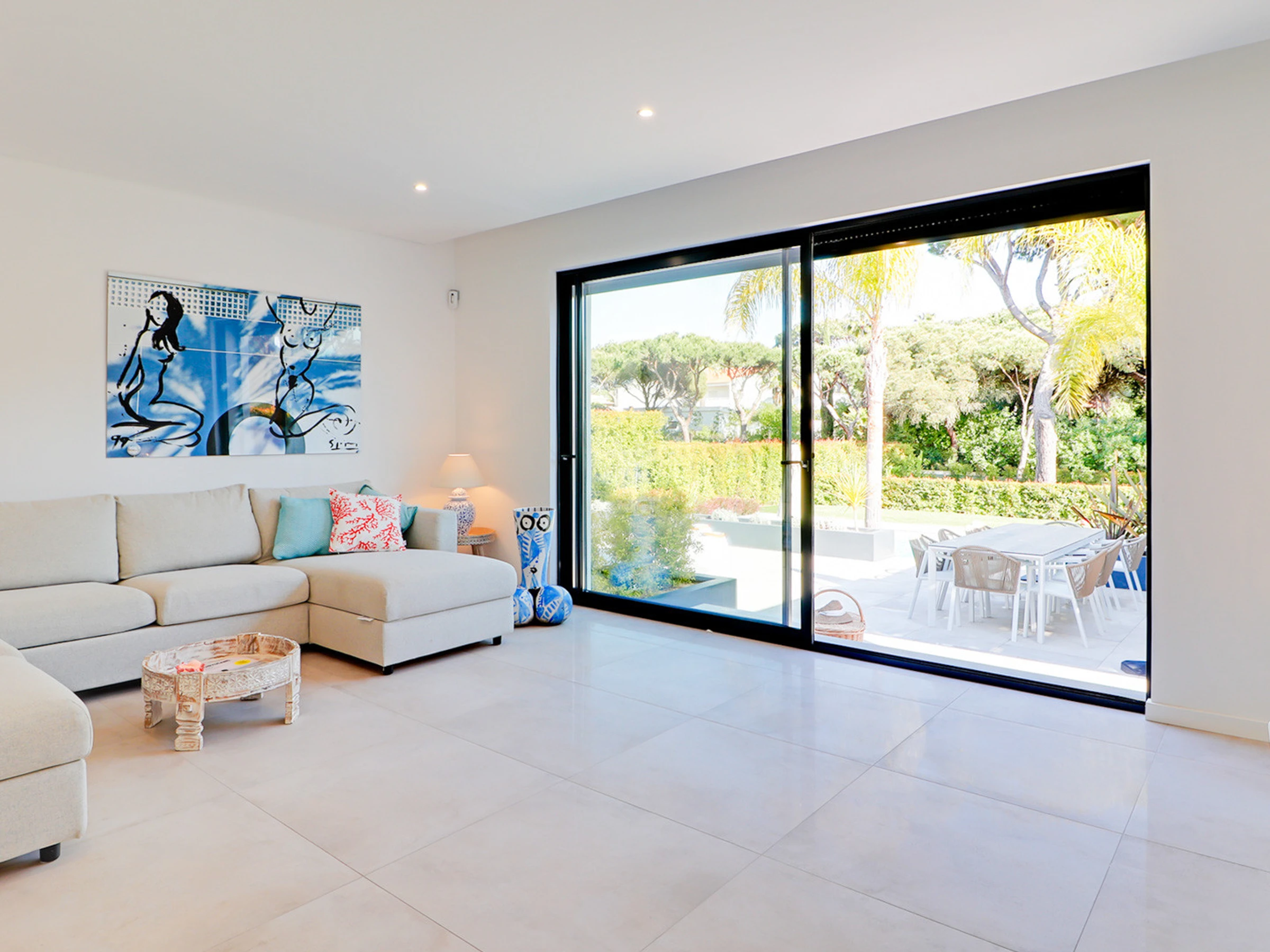 ✔ Salon et salle à manger lumineux, avec un accès direct au jardin et à la piscine, créant un environnement parfait pour des moments de loisirs.