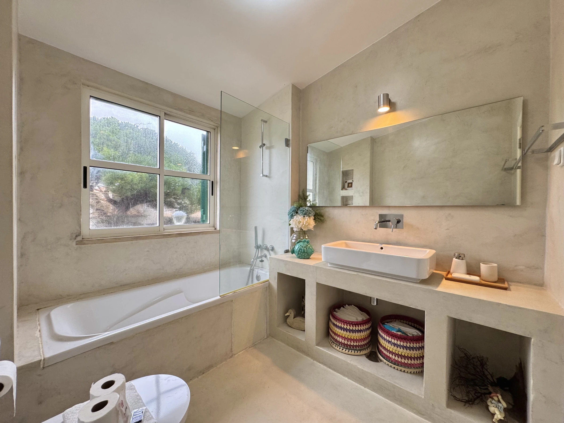Tous les draps et serviettes sont fournis, ainsi que des commodités pour le premier jour comme du gel douche et du papier toilette.