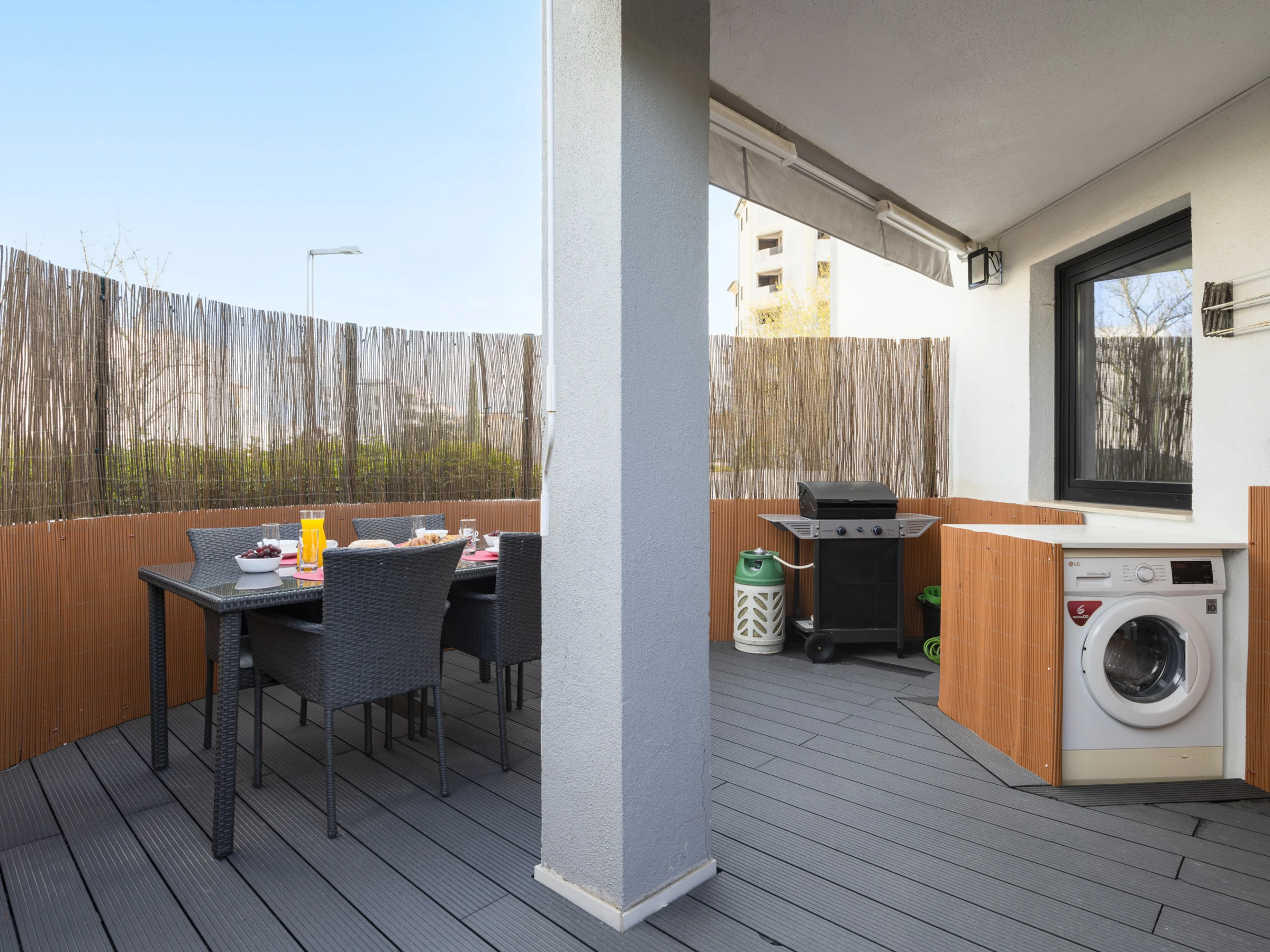 Dispose d'un ascenseur, de mobilier de jardin, d'une terrasse, d'un lave-linge, d'un barbecue, d'un fer à repasser, d'un accès internet (wifi), d'un sèche-cheveux, de la climatisation, d'une piscine communautaire+enfants, d'un garage dans le même bâtiment, 1 Télévision, télévision par satellite.