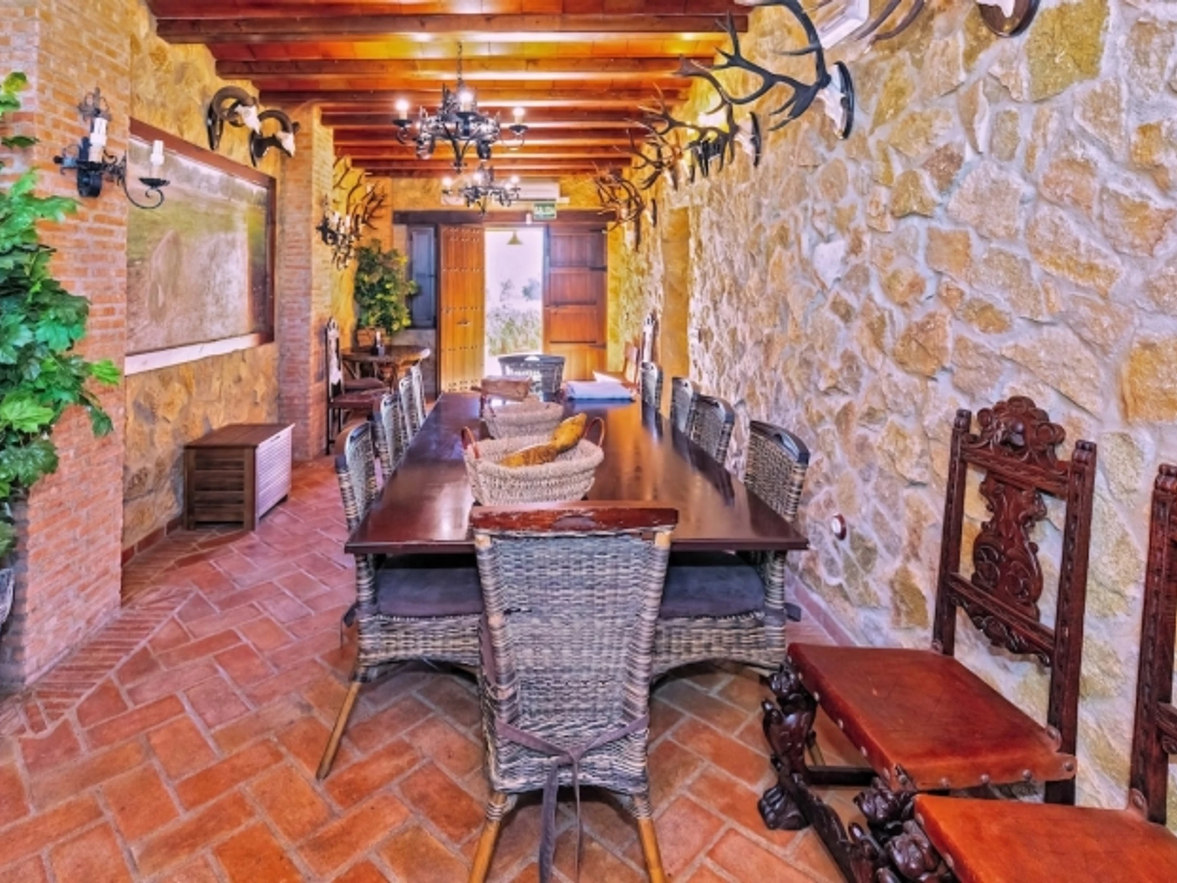 Profitez de la détente de cette maison rurale située au cœur d'une prairie abritant la plus grande forêt de chênes verts du monde, au sein d'une ferme avec élevage, ainsi que d'un espace événementiel pouvant accueillir 500 personnes dans un cadre unique et avec un balcon donnant sur le ciel de notre Réserve Starlight. Nous sommes certifiés par la Fondation Starlight ; renseignez-vous sur nos activités et expériences d'astrotourisme. Nous disposons également d'une piscine et d'un barbecue dans un cadre unique. Venez vivre une expérience inoubliable ! Cette maison de campagne chaleureuse offre une atmosphère calme et confortable, idéale pour les escapades en groupe ou en famille. Elle dispose de 6 chambres spacieuses, chacune avec sa propre salle de bain privative. Pour plus de confort, nous disposons également d'un espace couchage supplémentaire. La maison est dotée d'une cuisine moderne entièrement équipée et d'une grande salle à manger où vous pourrez déguster de délicieux repas en bonne compagnie. L'un des principaux atouts de cette maison est son impressionnante piscine, l'endroit idéal pour se détendre et se rafraîchir tout en profitant de la nature. De plus, l'espace barbecue vous permettra de partager des moments privilégiés entre amis et en famille, en cuisinant en plein air et en profitant d'une atmosphère unique. Tout cela dans un cadre naturel propice au repos et à la déconnexion. Une expérience unique à chaque recoin ! Enregistrement légal des voyageurs conformément aux décrets 1513/1959, 450/1975 et 933/2021. La présentation d'une pièce d'identité nationale ou d'un passeport est obligatoire pour l'enregistrement auprès de la police nationale espagnole. Seules les réservations confirmées seront demandées quelques jours avant l'arrivée via un lien. En cas de perte de clés, il sera nécessaire de contacter un serrurier d'urgence pour remplacer la serrure ou l'ouvrir afin d'accéder à la maison. Veuillez noter que les frais associés à ce service, y compris les frais de serrurerie, sont à la charge du client responsable de la perte. Les ordures ménagères doivent être déposées dans les conteneurs verts installés dans les rues de 20h00 à 23h00 du lundi au samedi. Il est demandé aux clients d'adopter une consommation responsable et durable des installations, dans le respect du voisinage. Il est strictement interdit d'organiser des fêtes et autres rassemblements similaires.