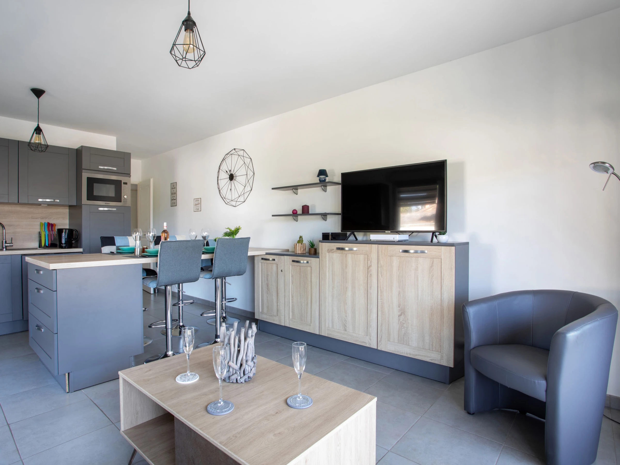 Apt 3 pièces 80 m2 au 1er étage. Aménagement confortable et moderne: séjour/salle à manger avec TV (écran plat). Sortie sur la terrasse. 1 chambre avec 1 x 1 lits superposés (90 cm, longueur 190 cm), 1 grand-lit (1 x 140 cm, longueur 190 cm), TV (écran plat). 1 chambre avec 1 grand-lit (1 x 160 cm, longueur 200 cm). Grande cuisine ouverte (four, lave-vaisselle, 3 plaques à induction, grille-pain, bouilloire électrique, micro-ondes, cafetière électrique, Capsules pour machine à café (NESPRESSO VERTUO), ilot de cuisine). Salle de bains, WC séparé. Chauffage, air-conditionné. Grande terrasse 30 m2. Meubles de terrasse. Vue sur la localité. A disposition: lave-linge, sèche-linge, fer à repasser, sèche-cheveux. Internet (Connexion WIFI, gratuit). Garage No 31 (1 Voiture). Veuillez noter: logement non-fumeur. Détecteur de fumée. Annonce d'un particulier (art 155, IV du CGI). [hidden]