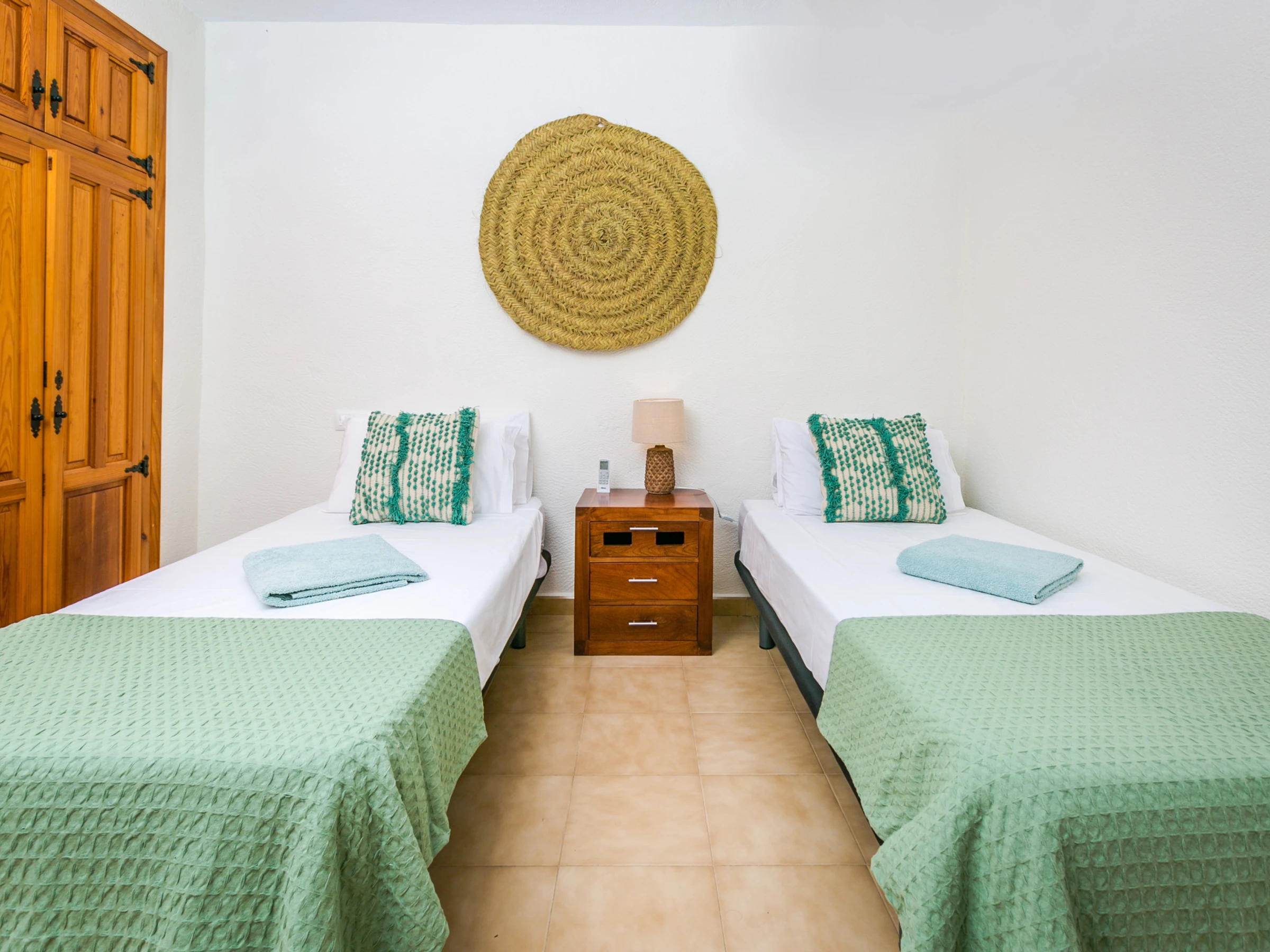 Cette villa, avec un parking pour trois voitures, dispose d'une chambre principale spacieuse avec une salle de bain attenante, une chambre supplémentaire avec deux lits et une chambre double, une cuisine entièrement équipée/salle à manger, une grande salle à manger séparée, un salon ouvert et une vaste zone de repas extérieure couverte équipée d'un barbecue au gaz — parfaite pour accueillir des repas en famille. Que pourrait-on désirer de plus ?