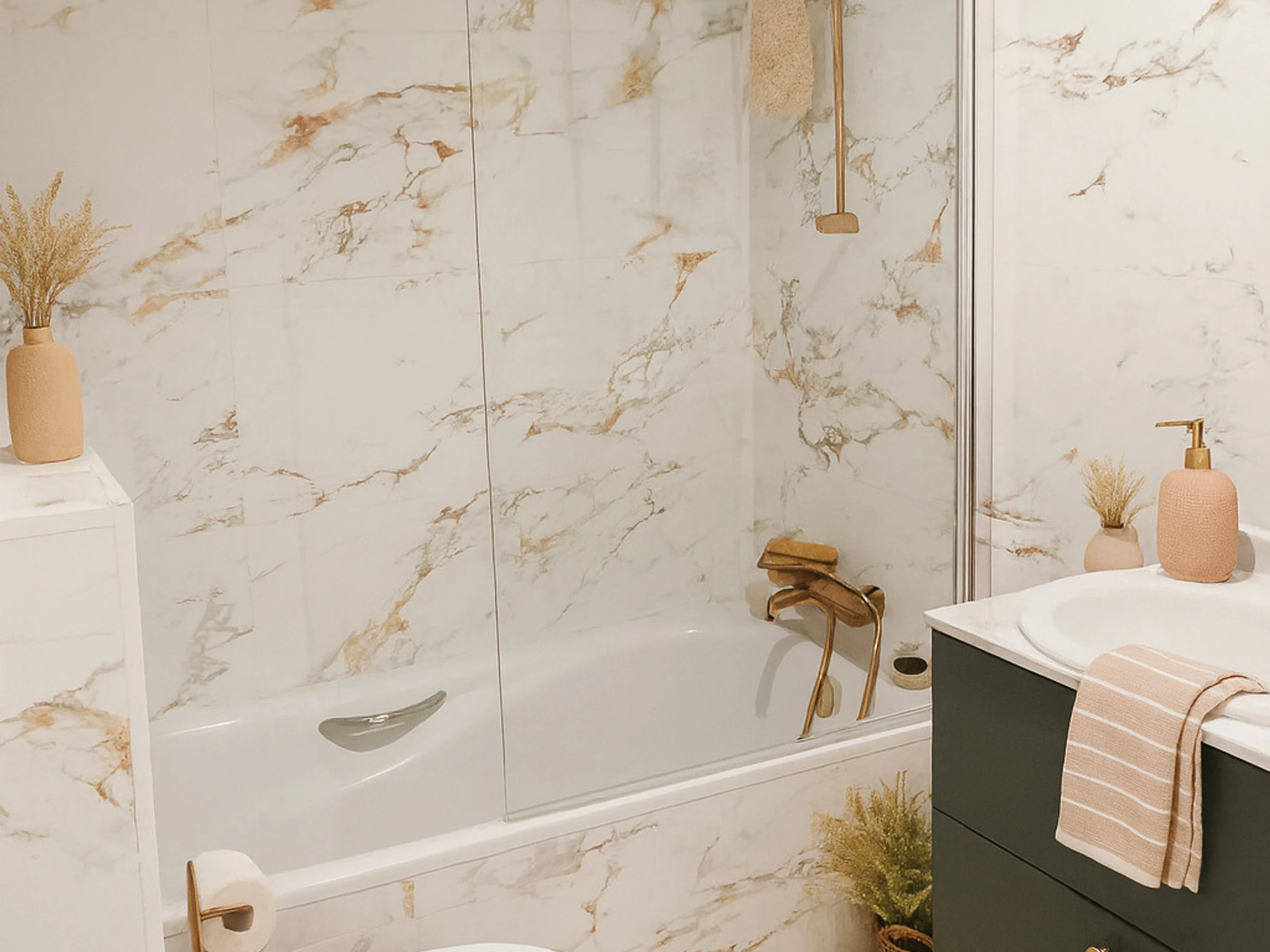 2 salles de bain complètes, l'une avec baignoire et l'autre avec douche, modernes et fonctionnelles.