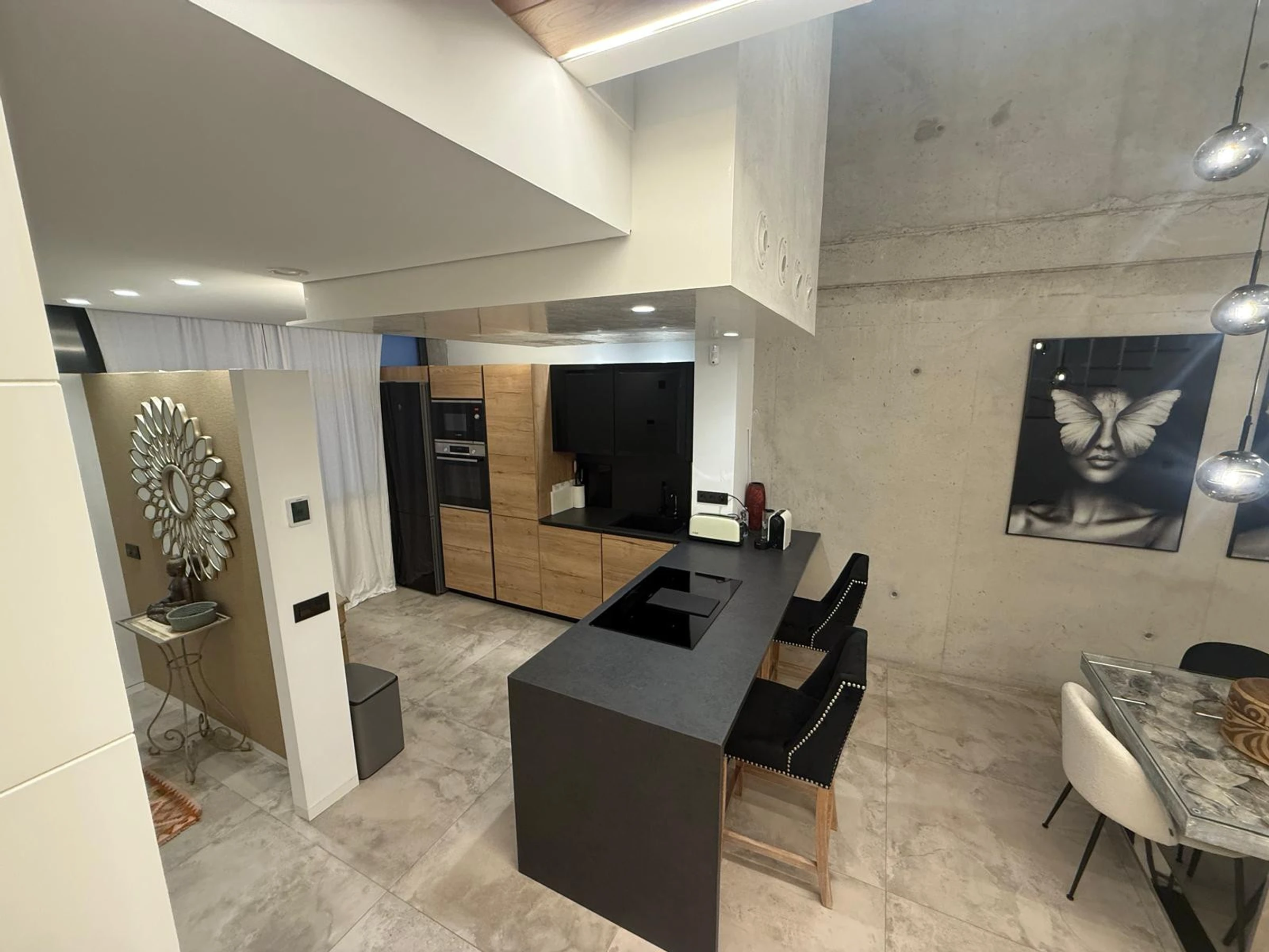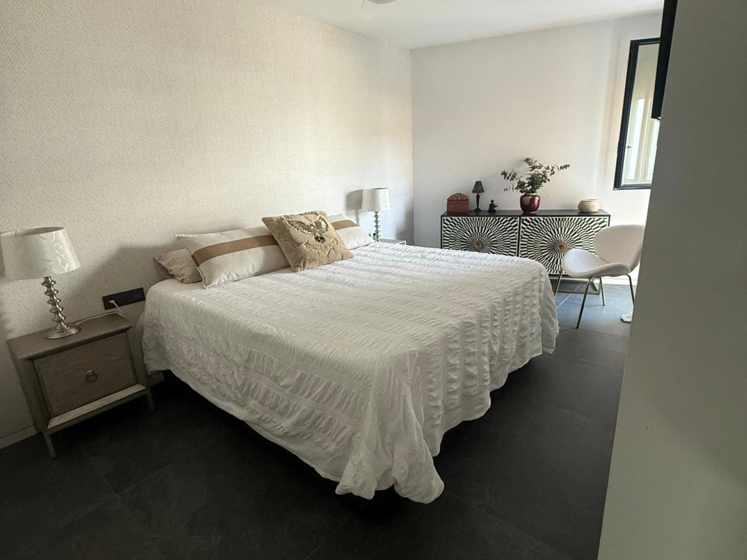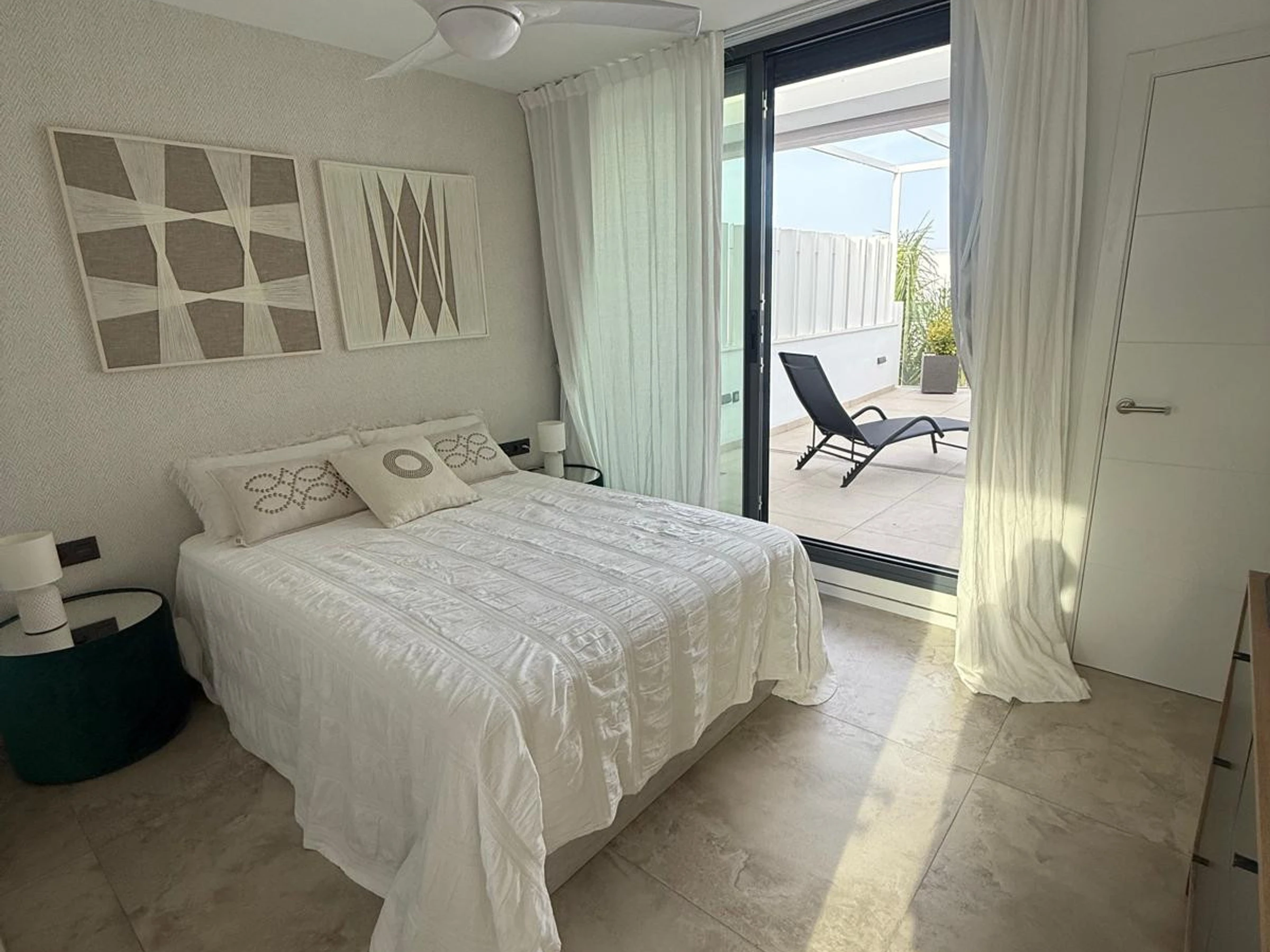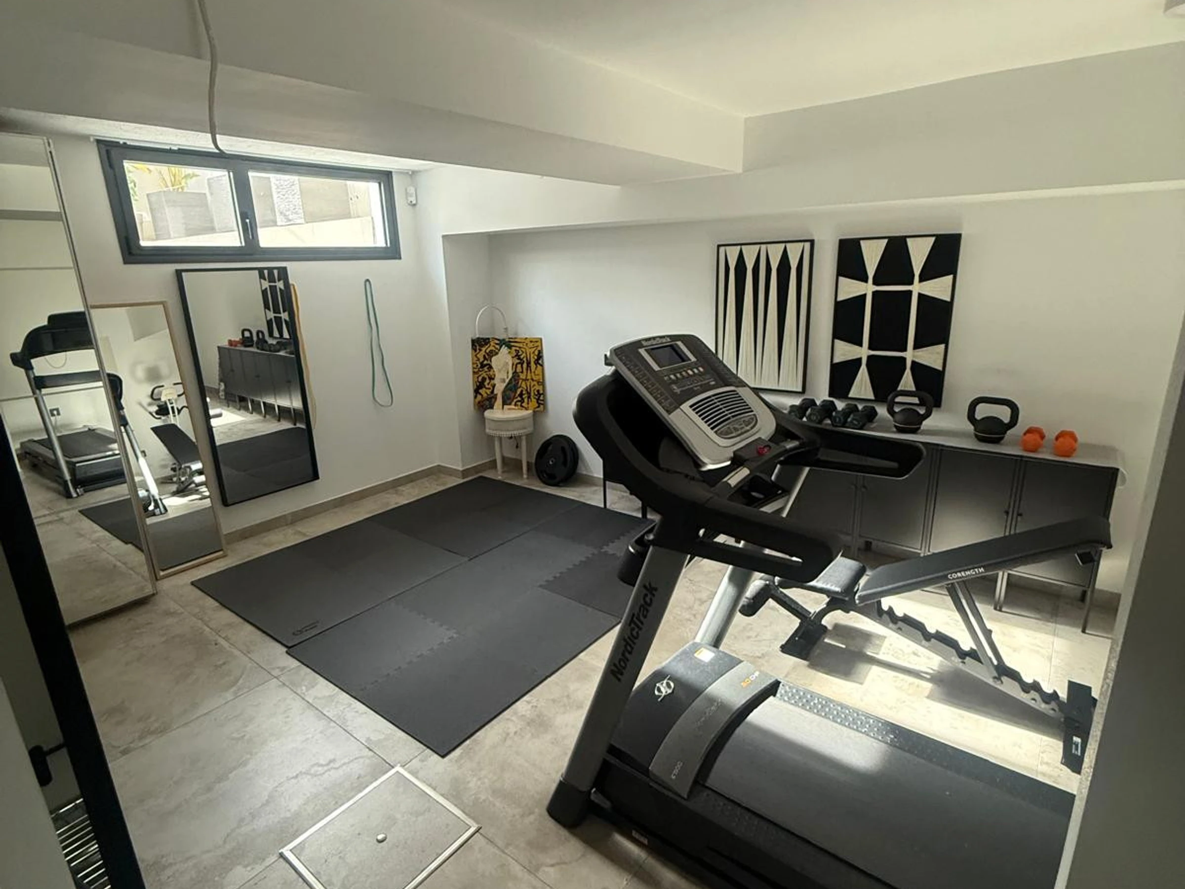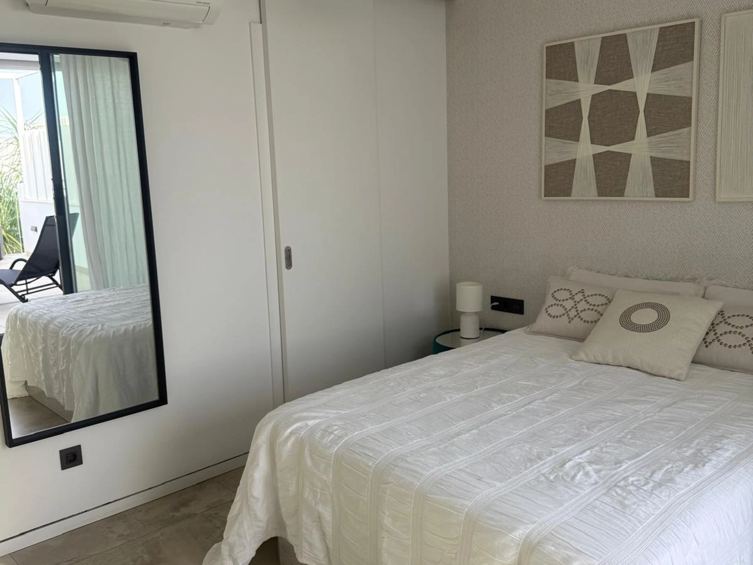 Elle dispose de jardin, mobilier de jardin, 50 m² de terrasse, lave-linge, fer à repasser, accès internet (wifi), sèche-cheveux, balcon, chauffage central, climatisation dans tout le logement, piscine collective, garage même bâtiment, 1 Télévision.